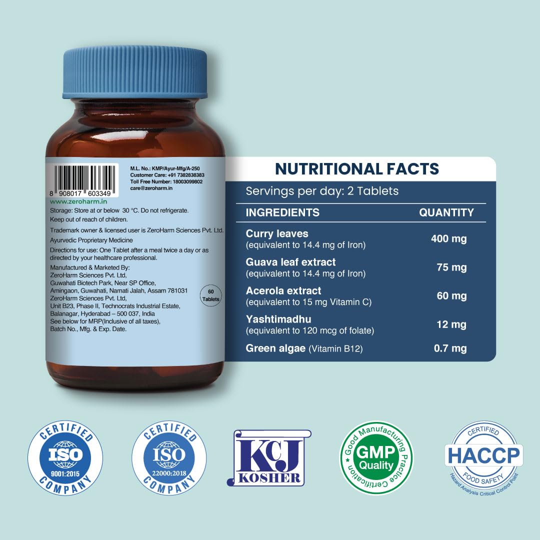 HomeHealth & PersonalDiet & NutritionHealth SupplementsZEROHARM Iron Zinc Folic Acid & B12 Tablets - Nano Formulated for High Absorption - Energy Immunity Skin Hair & Daily Wellness Support - Plant Based Supplement for Men Women - 60 Tablets - 2 Pack