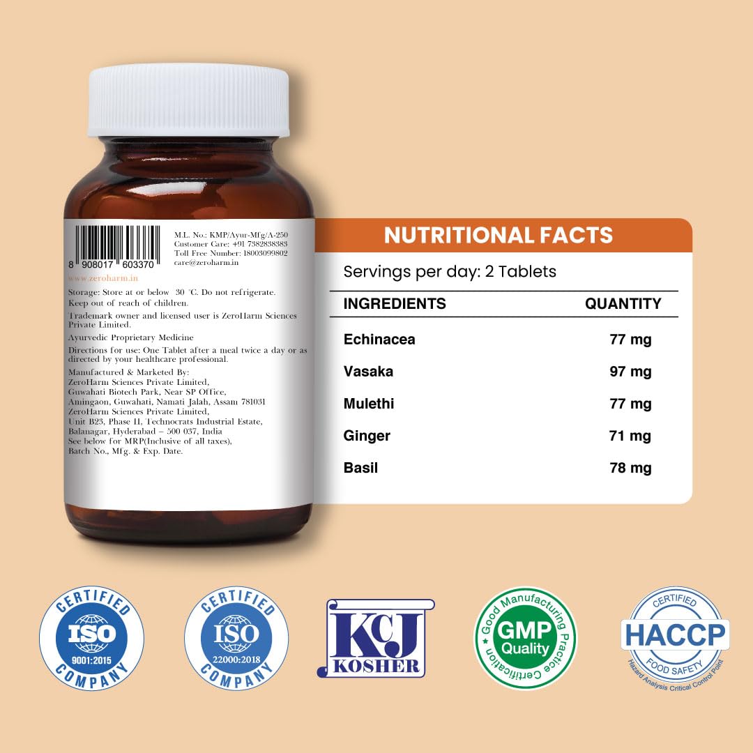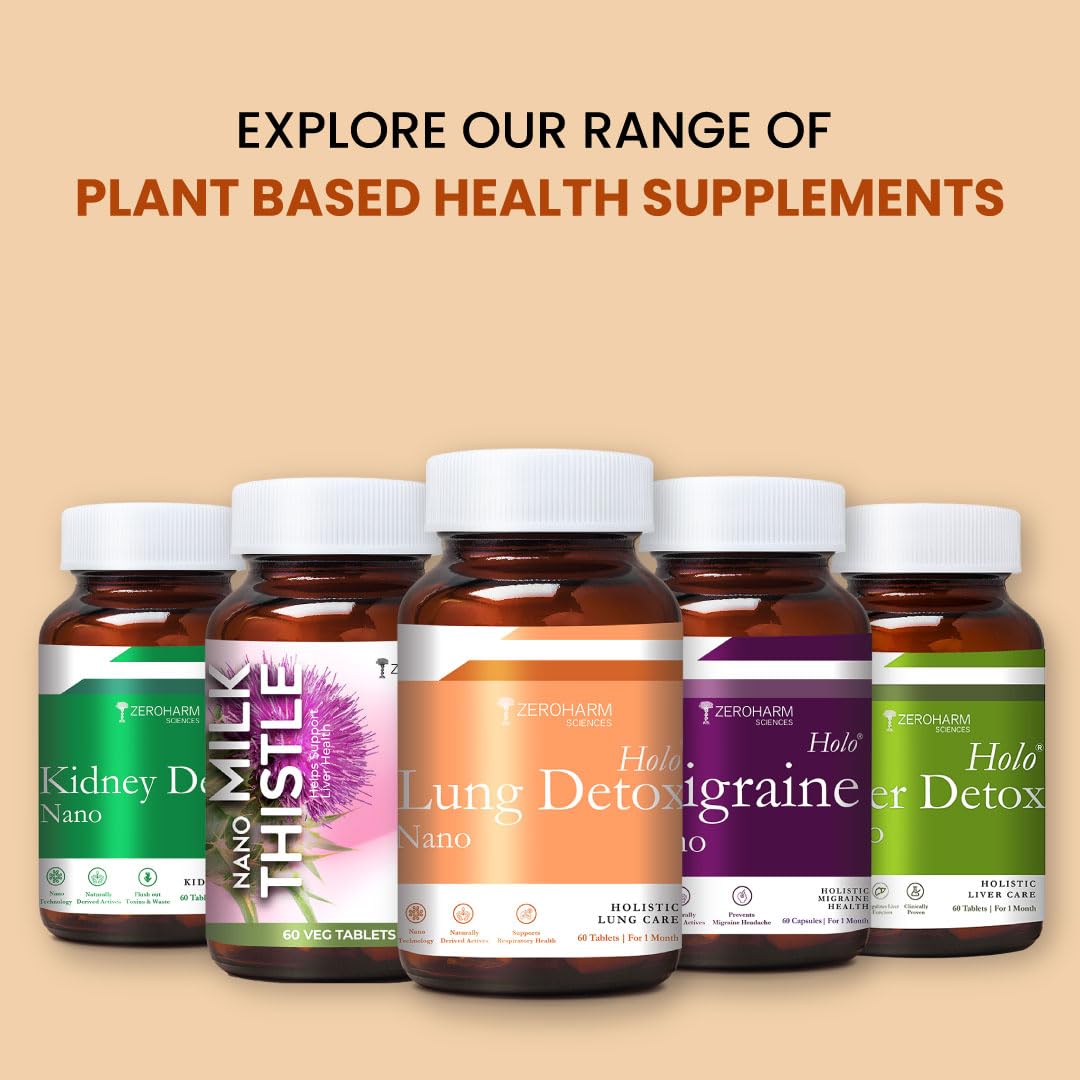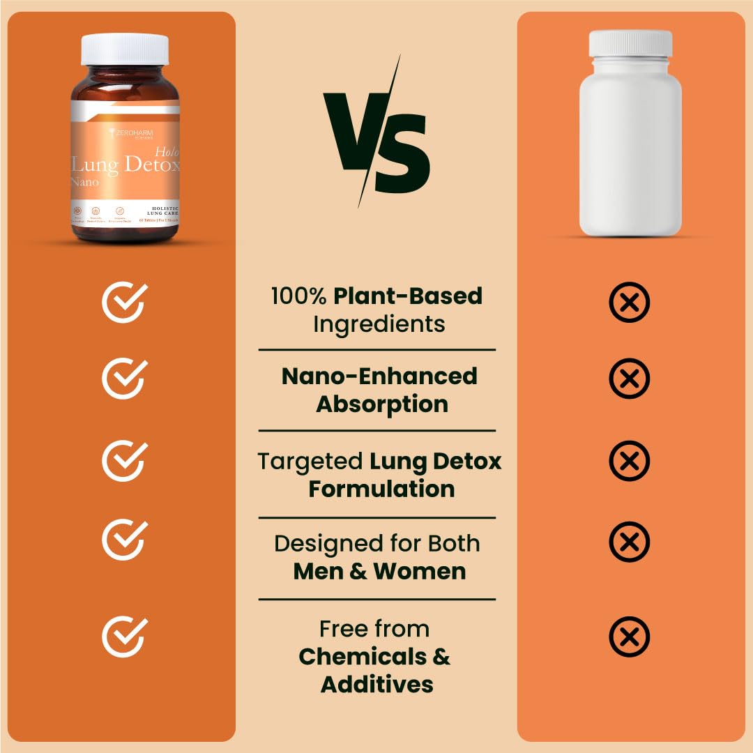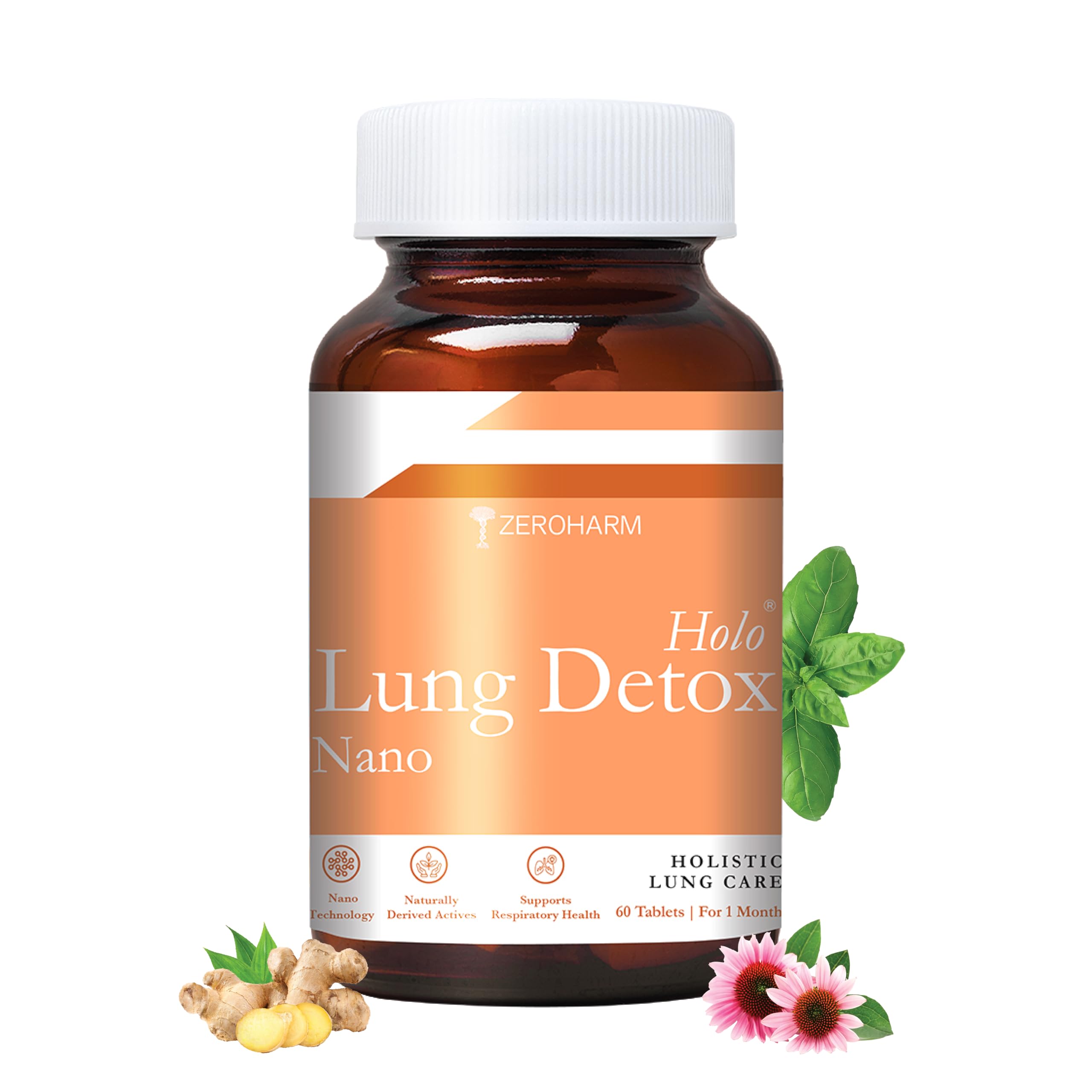 ZEROHARM Holo Lung Detox Tablets - Ayurvedic Lung Cleanse for Pollution Smoking & Respiratory Health - With Vasaka Echinacea Ginger Basil Mulethi - Nano Technology for Men & Women - 60 Tablets