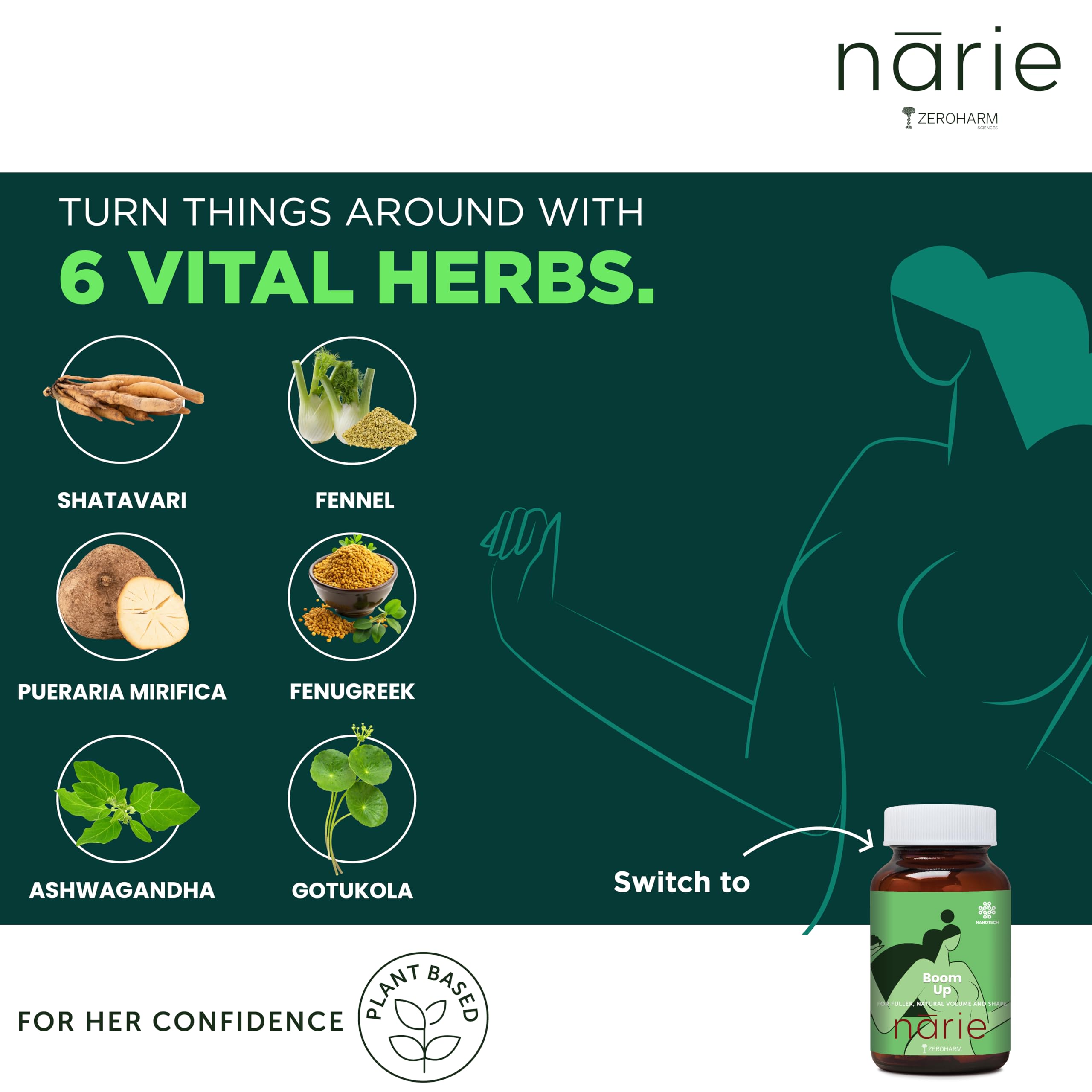 ZEROHARM Narie Boomup Capsules For Women| 60 Caps With Shatavari Fenugreek & 4 More Ingredients To Support B-Care | Feel Healthy & Fuller Volume |Embrace Your Natural Beauty With This Powerful Blend