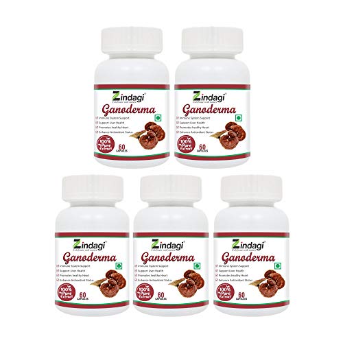 Zindagi Ganoderma Pure Extract Cap.. - Helpful In Weight Loss - Increase Energy Stamina (60 Caps Pack of 5)