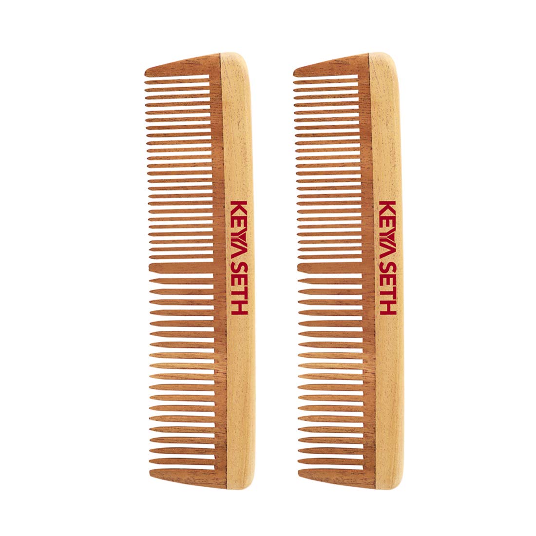 Keya Seth Aromatherapy Organic Neem Wooden Comb II Massages Scalp Stimulates Hair Growth Removes Dandruff Pack of 2