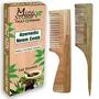 Mini Storify Truly Organic Kacchi Neem Wood Comb- Pack of 2 - Handmade Wooden Combs for Women and Men Tail and Handle Comb