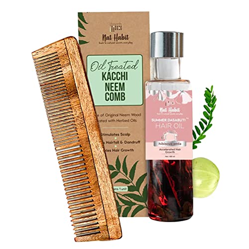 HANDMADE 100% NATURAL Dual Tooth KACCHI NEEM COMB For Multi-Action - DETANGLING FRIZZ Control & SHINE. Suited for all hair types. Benefits Young neem wood combs provide multi-faceted benefits for hair & overall health Drives hair growth & thickness Controls hair & thinning Keeps away brittleness cuticle damage & hair breakage. Kitchen fresh Hair Oil for severe hairfall and hair control. Specially made with cooling ingredients for Summer conditions. This Dasabuti oil is enriched for over 10HRS via Slow Heat Infusion of fresh hibiscus leaves neem curry leaves bel leaves brahmi tulsi amla shikakai nagarmotha flax seeds vetiver kalonji & more in multiple oils such as castor coconut & mustard. 15 Ayurvedic herbs infused for maximised results. All oils are PURE Pressed. ZERO Paraffin & Mineral Oils. ZERO chemic& .