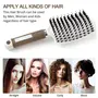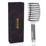 The curved and oversized shape functions by allowing optimum contact points and angles with the scalp which can hold more hair altogether useful to massage scalp in many directions and accelerate blood circulation.