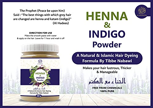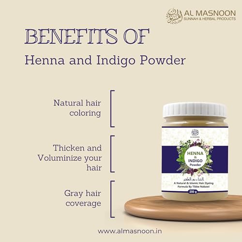 AL MASNOON Henna & Indigo Powder/A Natural & Islamic Hair Dyeing Formula By Tibbe Nabawi 200gm (Pack of 1)