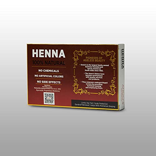 Anoo's Henna is the best and safest way to colour your hair. It has an excellent all- natural hair conditioner and colorant as it has no ammonia chemicals toxins and its free from any side effects. It has good cooling properties and adds strength & good volume to the hair. It also nourishes the hair by making it shiny soft silky and strong. Henna repairs and seals the hair cuticle thus helps in healing hair shaft and preventing hair breakage. Henna balances the pH of the scalp and helps in hair strengthening preventing premature hair fall and graying. Anti- microbial properties of henna helps keep dandruff and itchiness at bay and clear the scalp. Annos Henna can be used by both men and women.