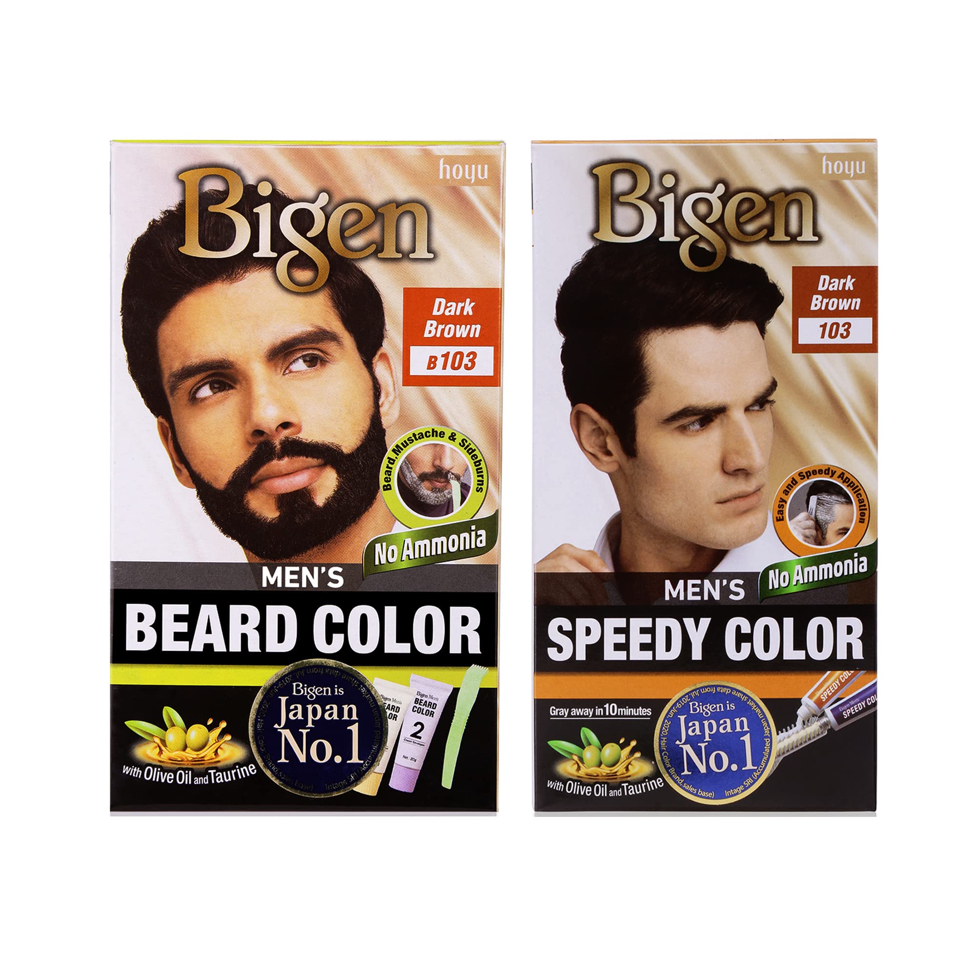 Bigen Beard 103 & Men's Speedy Hair Color 103 (Pack Of 2) Dark Brown
