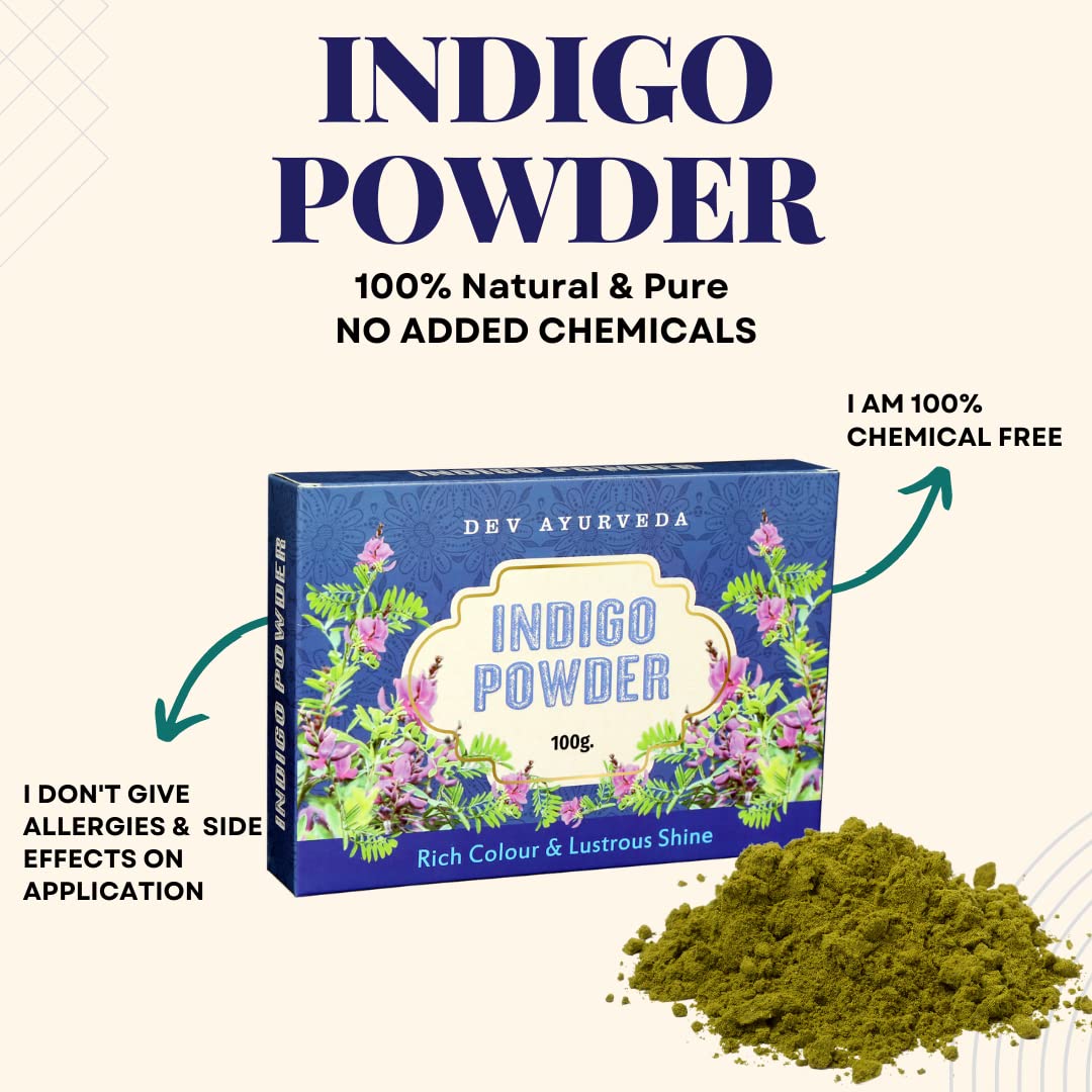Dev Ayurveda Indigo Powder 200Gm. (100gm X 2 Packs) ORGANIC || 100% Natural & Safe