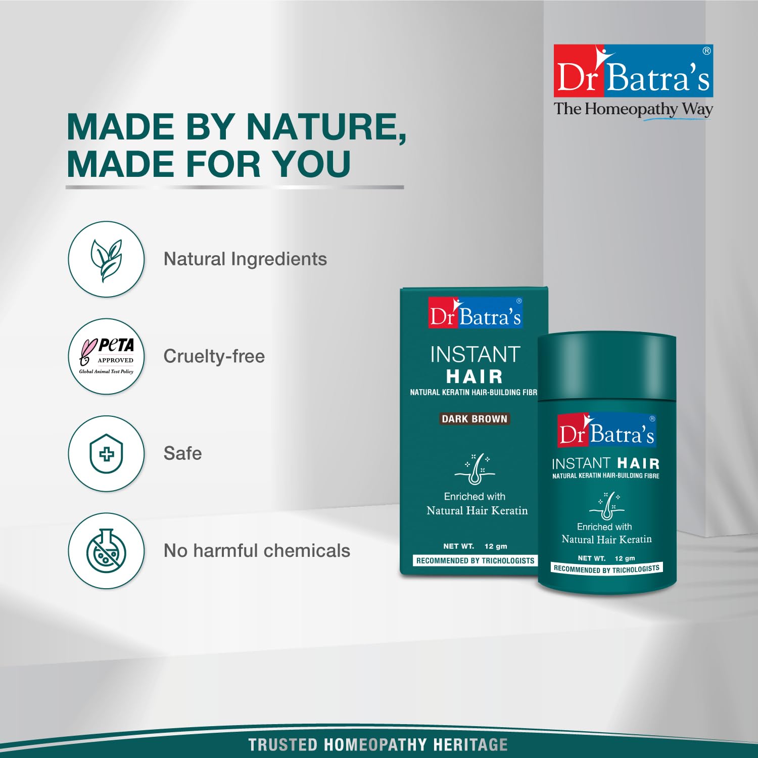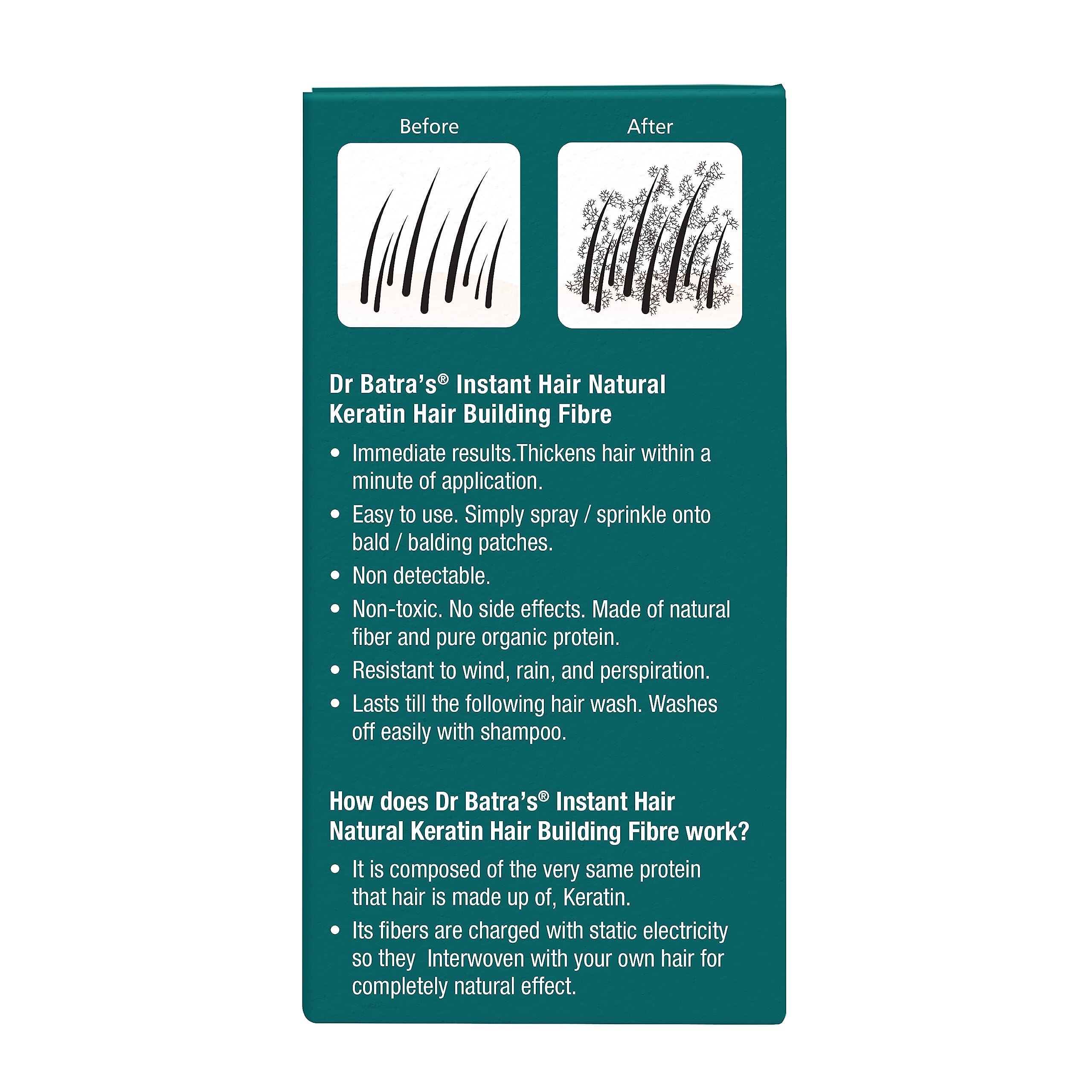 Dr Batra's have launched new enhance version of Hair fibre. Dr Batra's Instant Hair Thickener is non-toxic and is designed from 100% natural hair building fiber. These fibers adhere to your hair and scalp giving your thin hair an instant dense appearance. To match your natural hair colour it comes in shades of Black and Dark Brown. Instant Hair Thickener provides a hassle-free application and is the perfect solution to natural-looking fuller hair. It is resistant to rain wind and perspiration and lasts until next hair wash. With Dr Batra's Instant Hair Thickener say goodbye to embarrassing visible scalp patches and regain fuller-looking hair.
