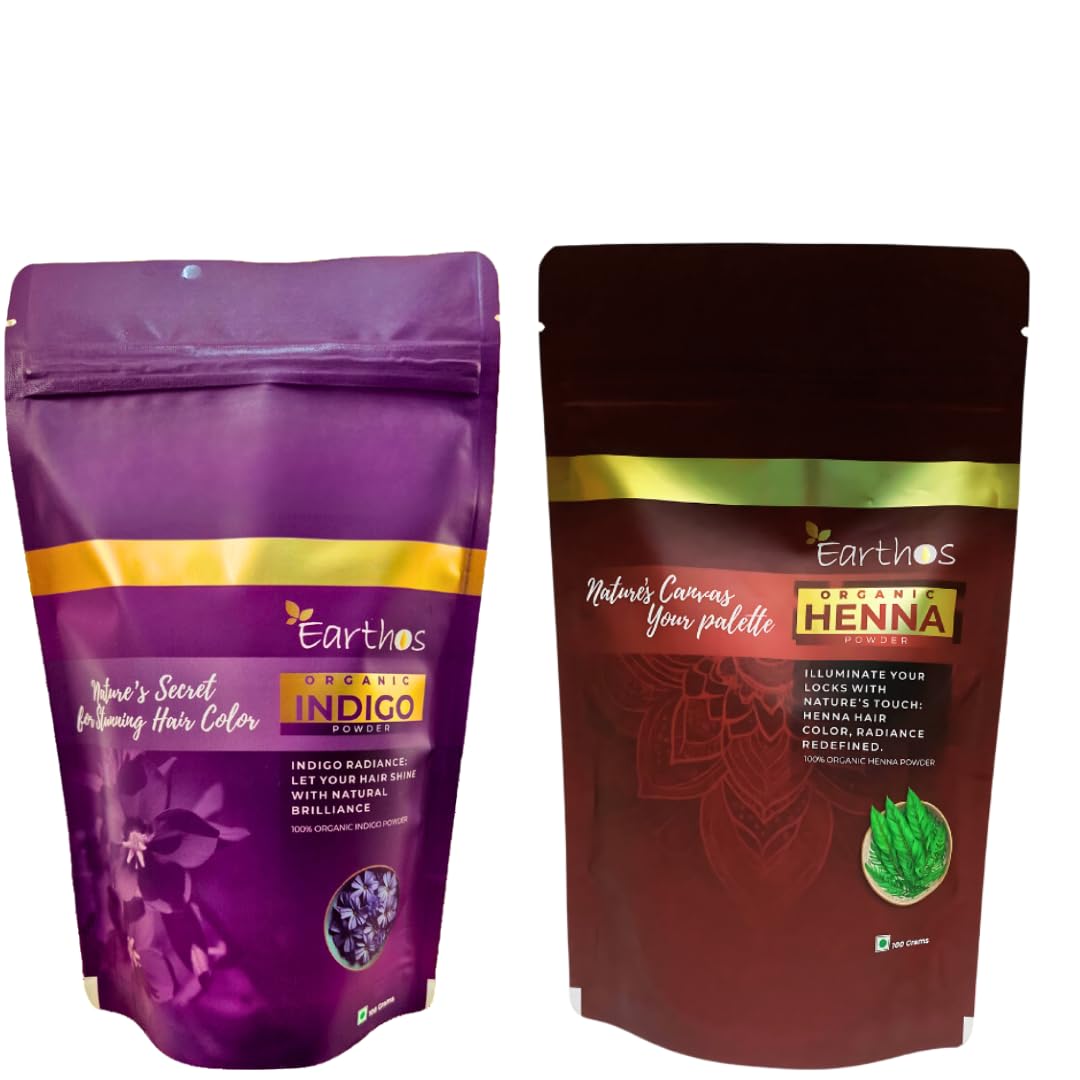 Earthos Indigo Henna Combo Pack | 100 gram each | 100% natural | Hair colour | Chemical free