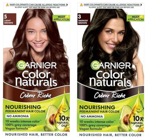 Garnier Color Naturals Cr√me hair color, Shade 3 Darkest Brown, 70ml + 60g & Garnier Color Naturals Cr√me hair color, Shade 5 Light Brown, 70ml + 60g