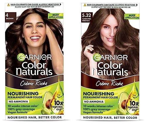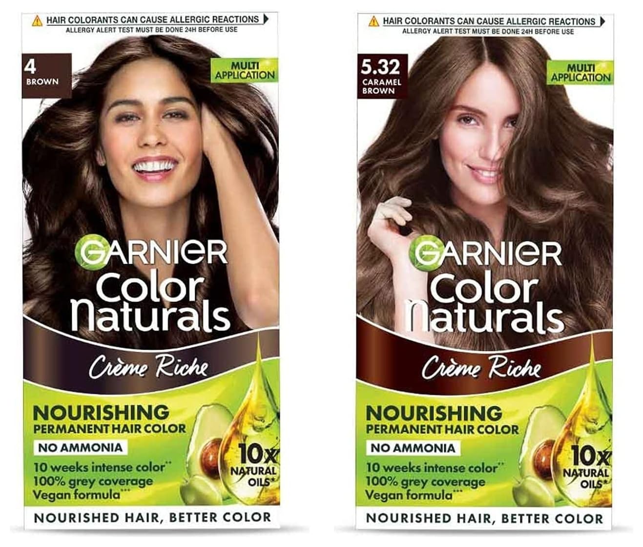 Garnier Color Naturals Crème Hair Color, Shade 5.32 Caramel Brown, 70ml + 60g and Color Naturals Crème Hair Color, Shade 4 Brown, 70ml + 60g