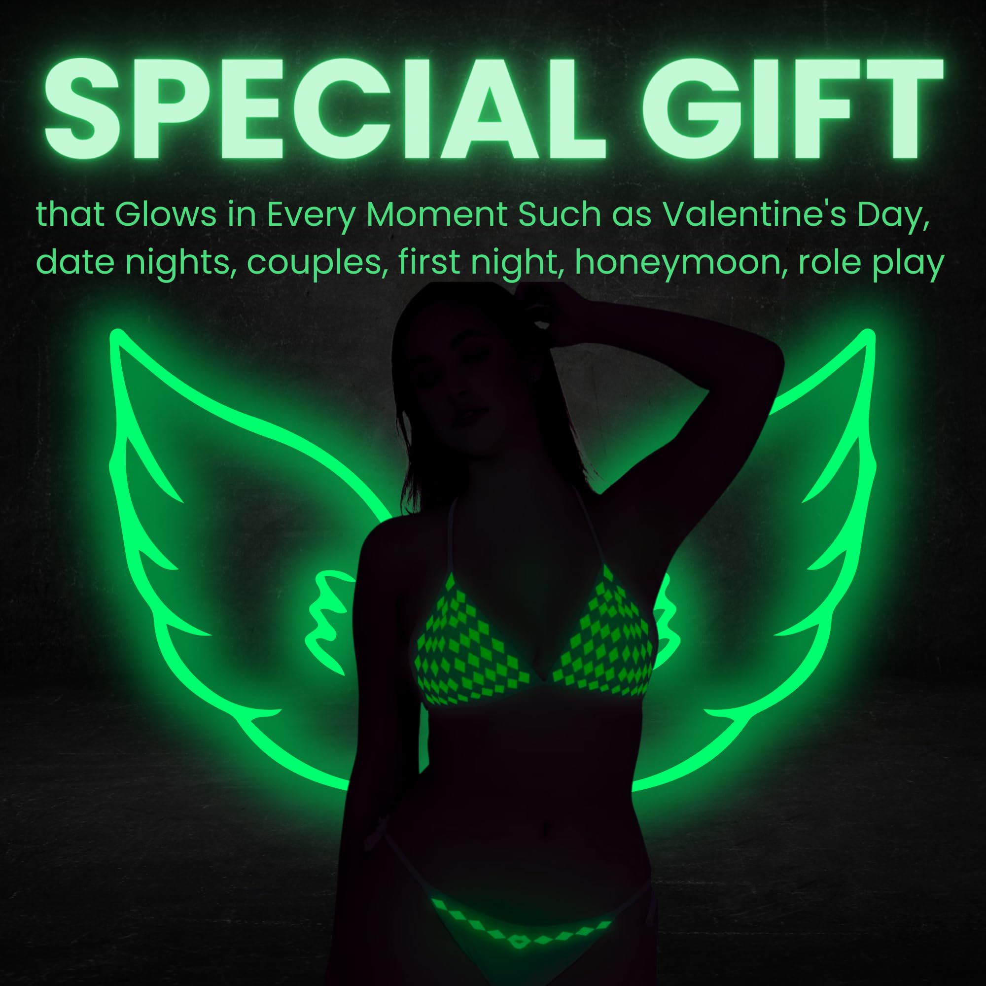 Glow in Dark Lingerie Set for Women | Bridal Bralette | Lace Bikini Set |Honeymoon | Dating | Anniversary White and Green