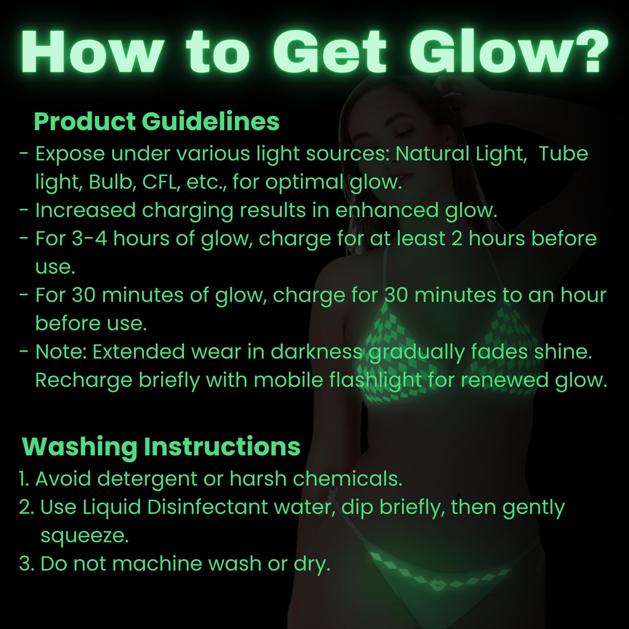 Glows in the Dark womensexy lace lingerie bra panty set is perfect for your bedroom needs. Not just your partner but you too going to love yourself in this hot and sexy bikini set. It will glow in dark after you keep it under light for few minutes or if that is not possible you can charge it with your phoneflash light. Wash Care- Dip in soapy water for 2-3 seconds and dry. (Do not squeeze)