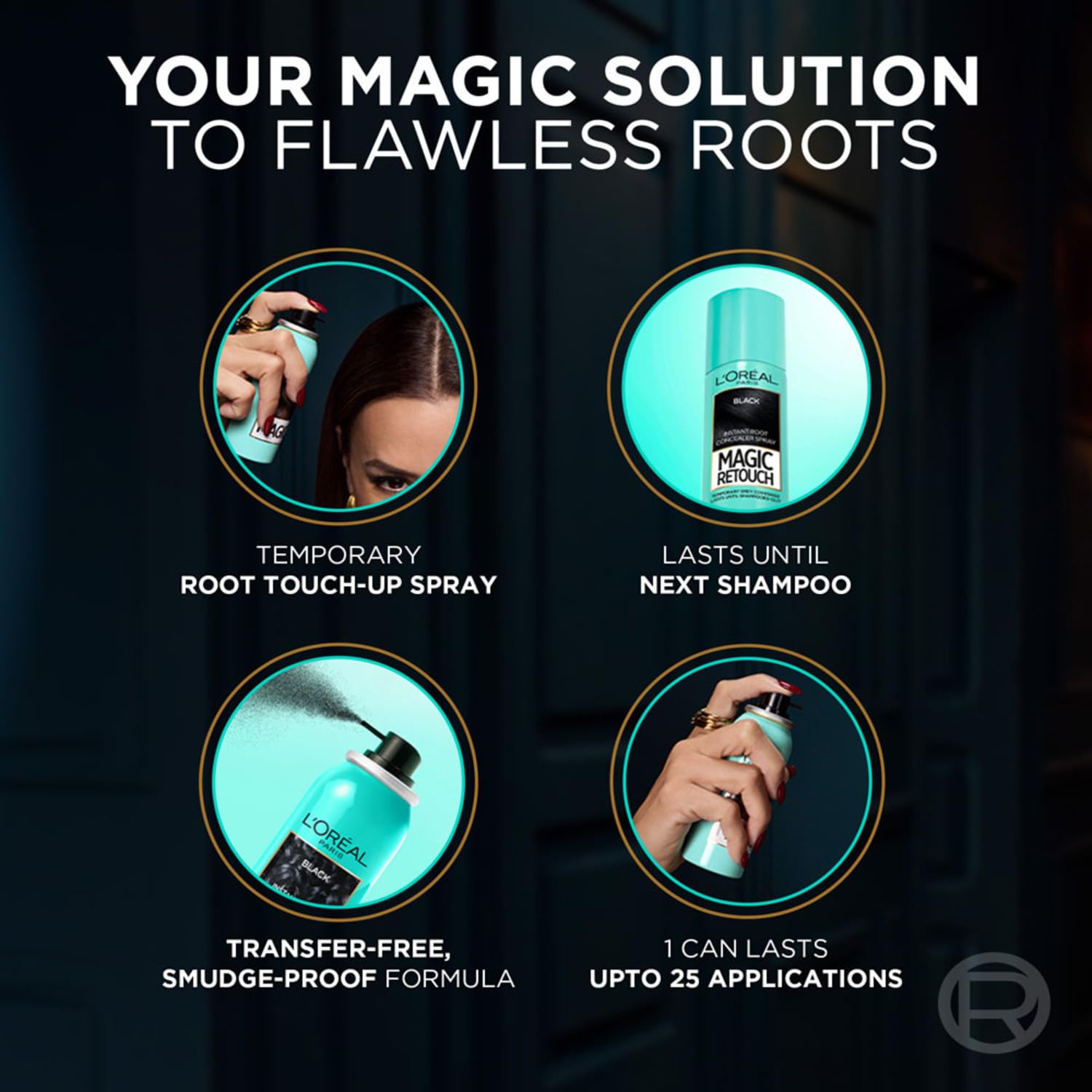 Color:Black|Design:Retouch SprayThe L'Oreal Paris Magic Retouch is an instant root concealer spray that covers grey roots in just one quick spray - when Where and how you need it. Perfectly matches and blends with your hair color. 3 seconds to a flawless root touch up. The pinpoint micro-diffuser precisely targets greys and the rich color pigments give you perfectly blended coverage.Lasts until washed out. No transfer Lightweight formula. Available in brown and black hair color. Find your shade!