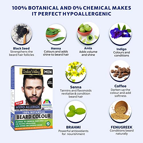 INDUS VALLEY 100% Botanical Hypo Allergic Aqua Beard Colour (Dark Brown, 100g +15ml)