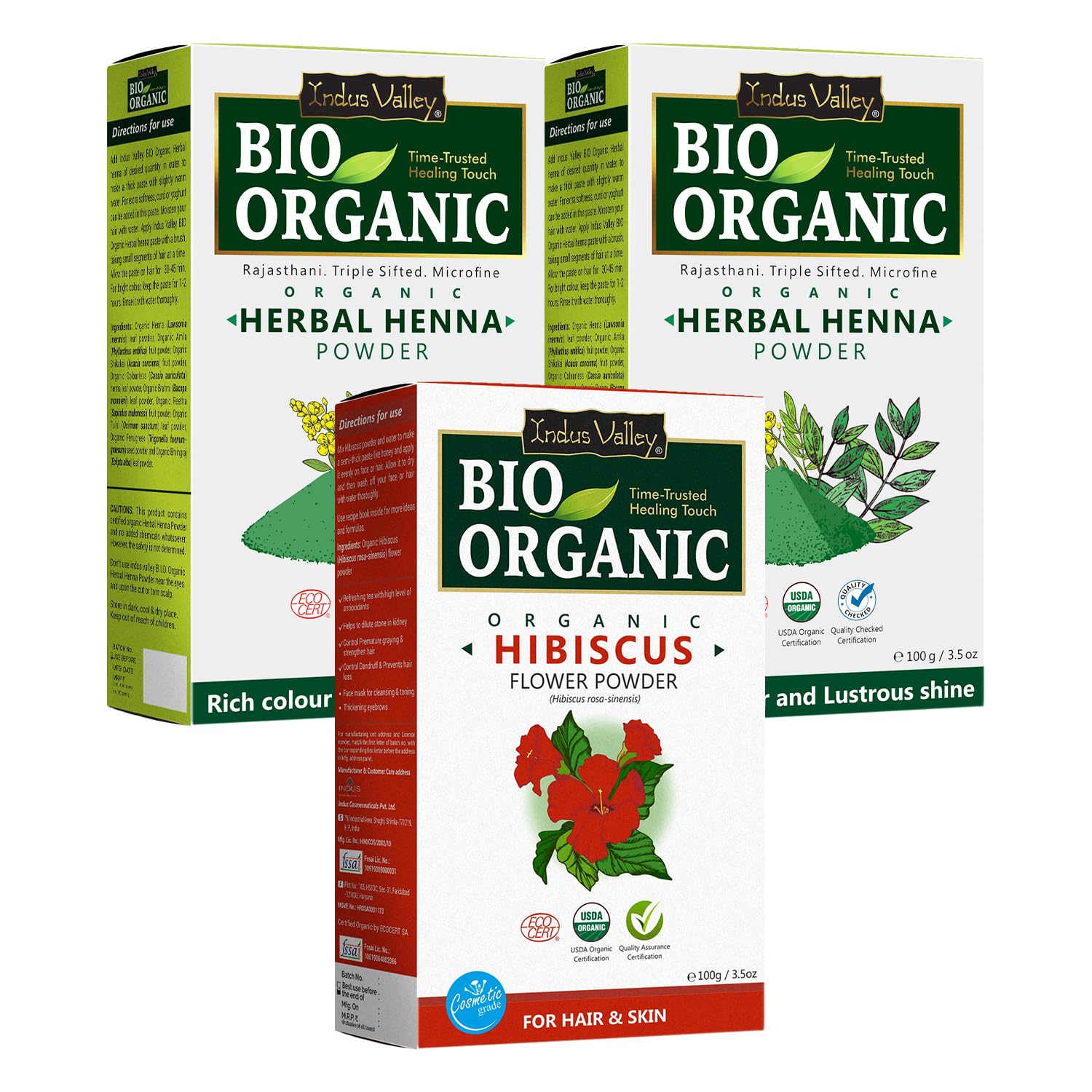 Indus valley 100% chemical free powder without any added chemicals fillers and preservatives.Hibiscus is rich in antioxidants purify your skin by breaking down dead skin and help to control acne breakouts.Reduces the appearance of large pores and keeps the complexion smooth soft and suppleherbal henna powder gets an approval of nature for scalp care and hair strength. 100% natural and pure henna powder with natural herbs and no added chemicals whatsoever. Tends to offers rich coloration impact on hair making it shiny and soft to touch.
