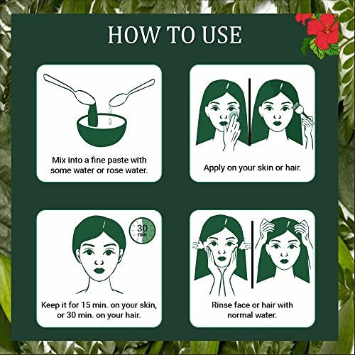 Indus valley 100% chemical free powder without any added chemicals fillers and preservatives.Hibiscus is rich in antioxidants purify your skin by breaking down dead skin and help to control acne breakouts.Reduces the appearance of large pores and keeps the complexion smooth soft and suppleherbal henna powder gets an approval of nature for scalp care and hair strength. 100% natural and pure henna powder with natural herbs and no added chemicals whatsoever. Tends to offers rich coloration impact on hair making it shiny and soft to touch.