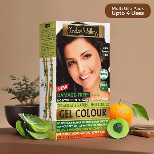 INDUS VALLEY Damage Free Natural Gel HairColor for Women|Ammonia & PPD Free Organic HairColor with 100% Grey Coverage, Long Lasting Conditioning Hair Color|Dark Brown 3.00-Pack of 2(2x220 = 440 ml)