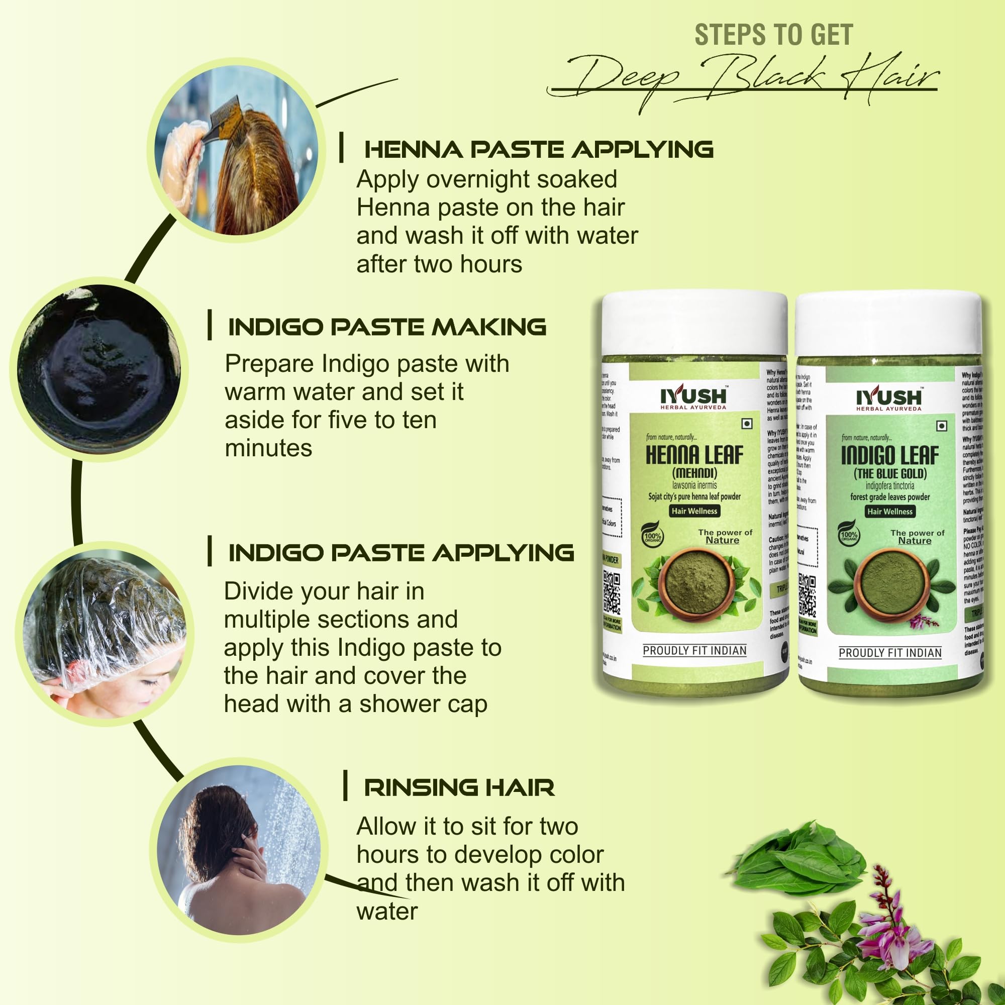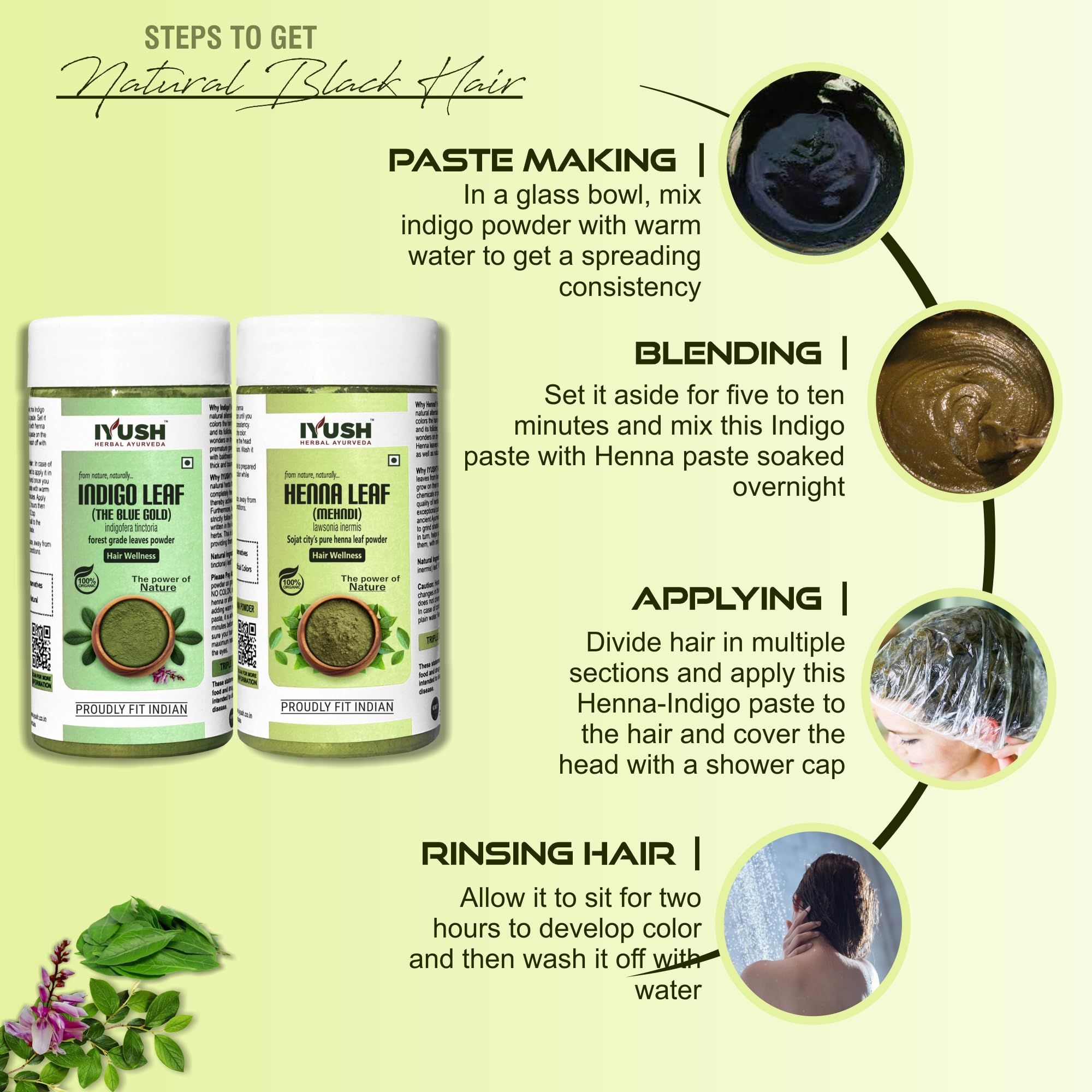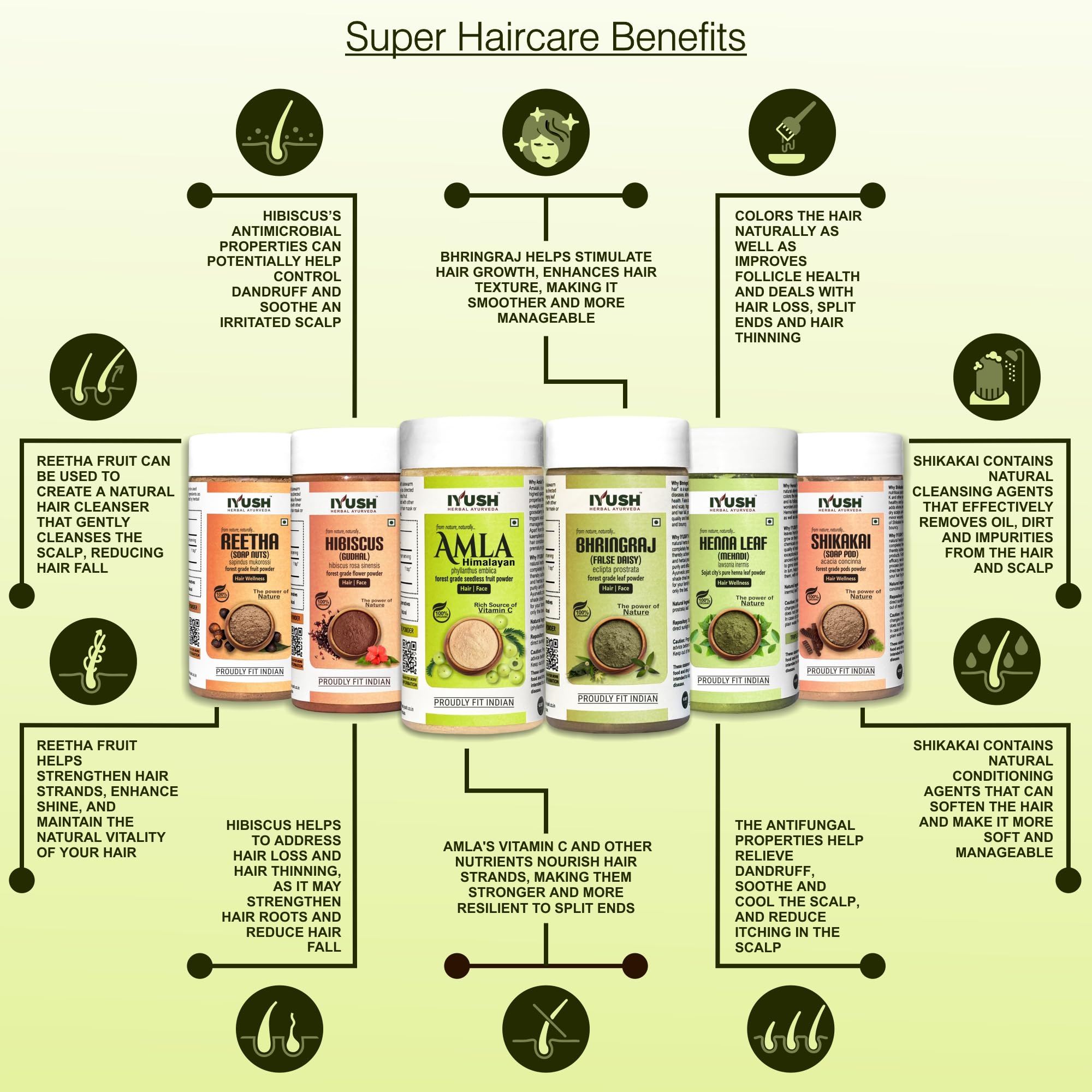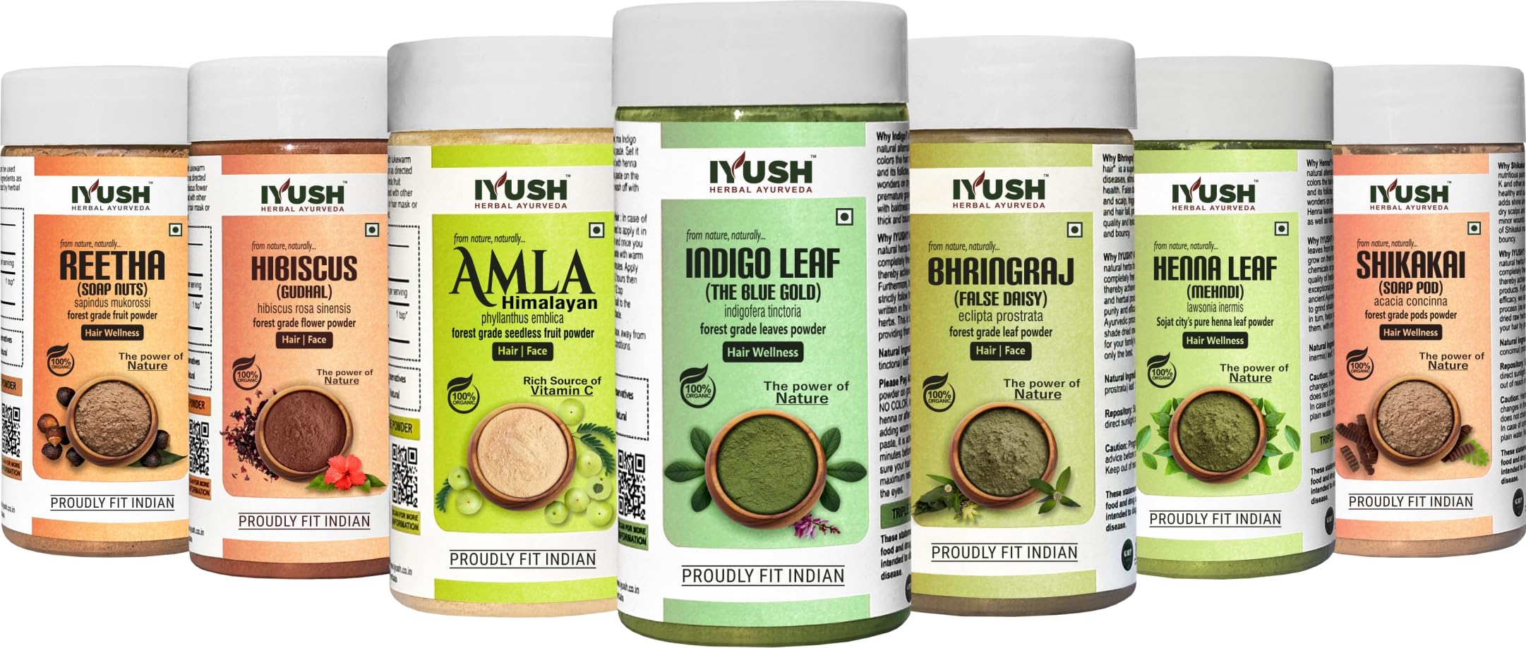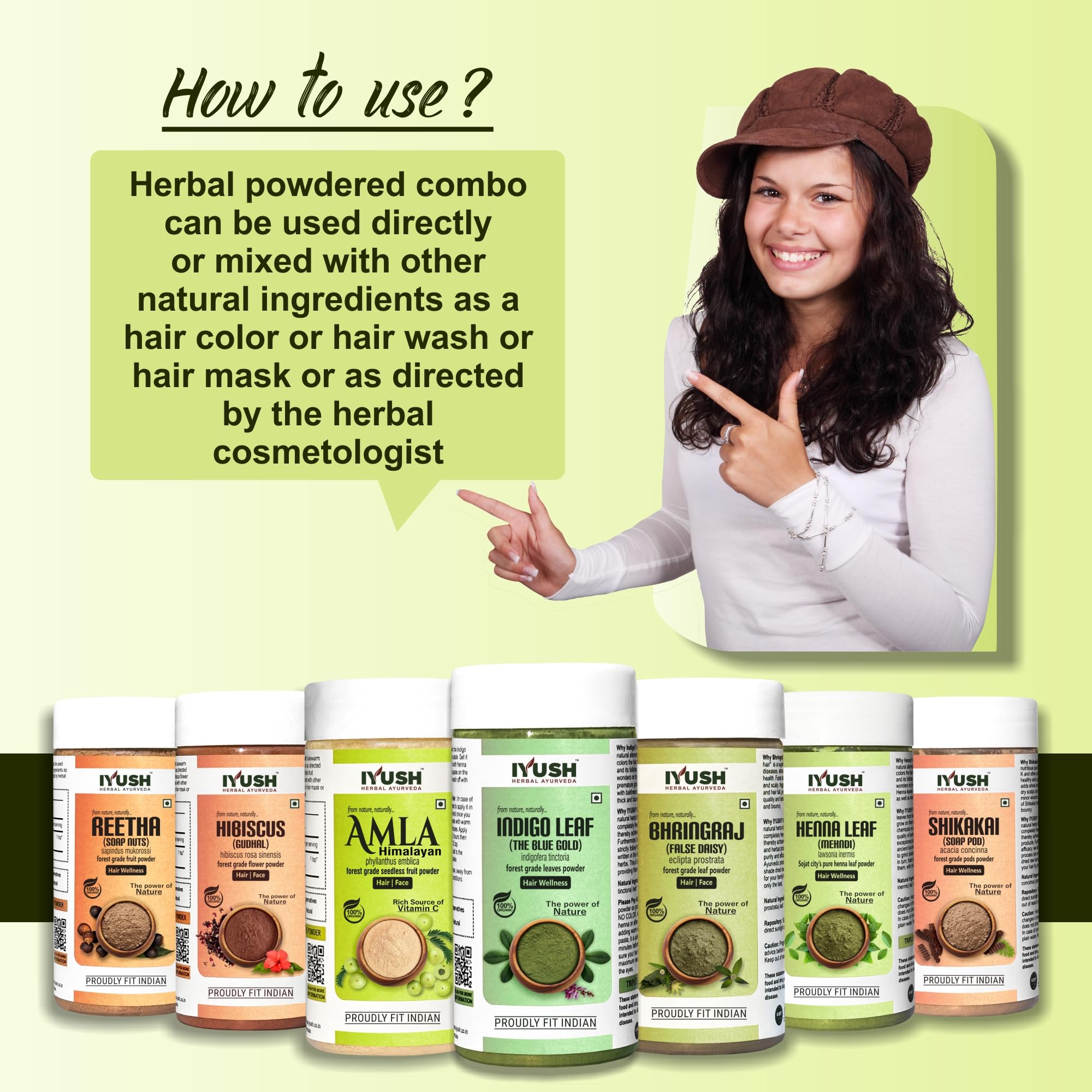 IYUSH Herbal Ayurveda Amla Reetha Shikakai Bhringraj Hibiscus Indigo and Henna Powder - (pack of 7 Total 700gm) 100gm each
