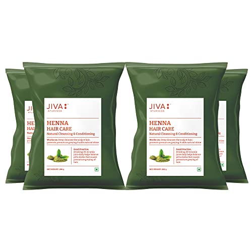 Jiva Henna Hair Care Powder 200 g | 100% Pure & Natural | Cleans & Nourishes Hair & Roots And Provides Natural Color & Shine | Helps With Dandruff, Itchy Scalp, & Frizzy Hair (Pack of 4)