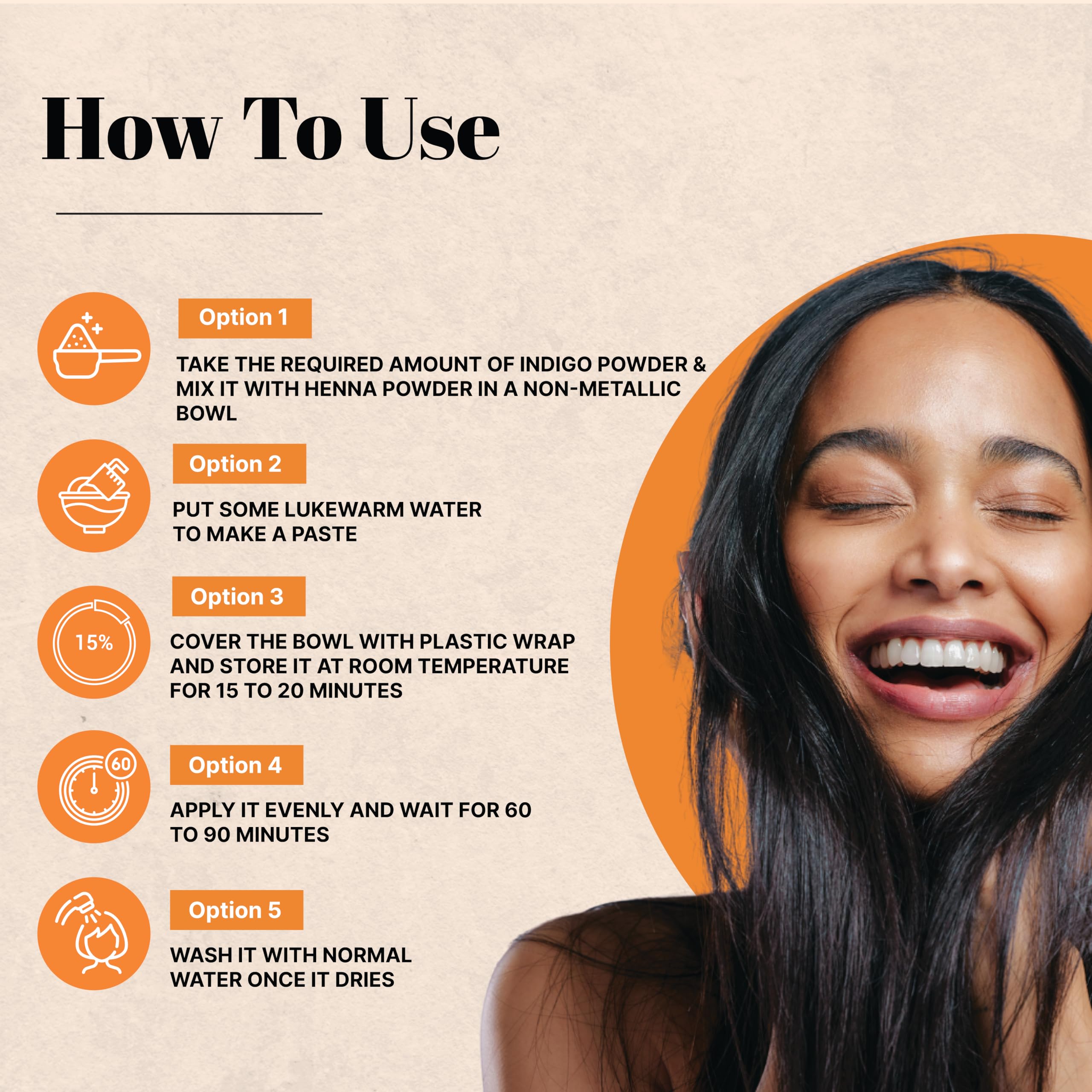 Just Jaivik Indigo Powder - Natural Hair Color | Chemical-Free Alternative to Synthetic Dyes 227 g