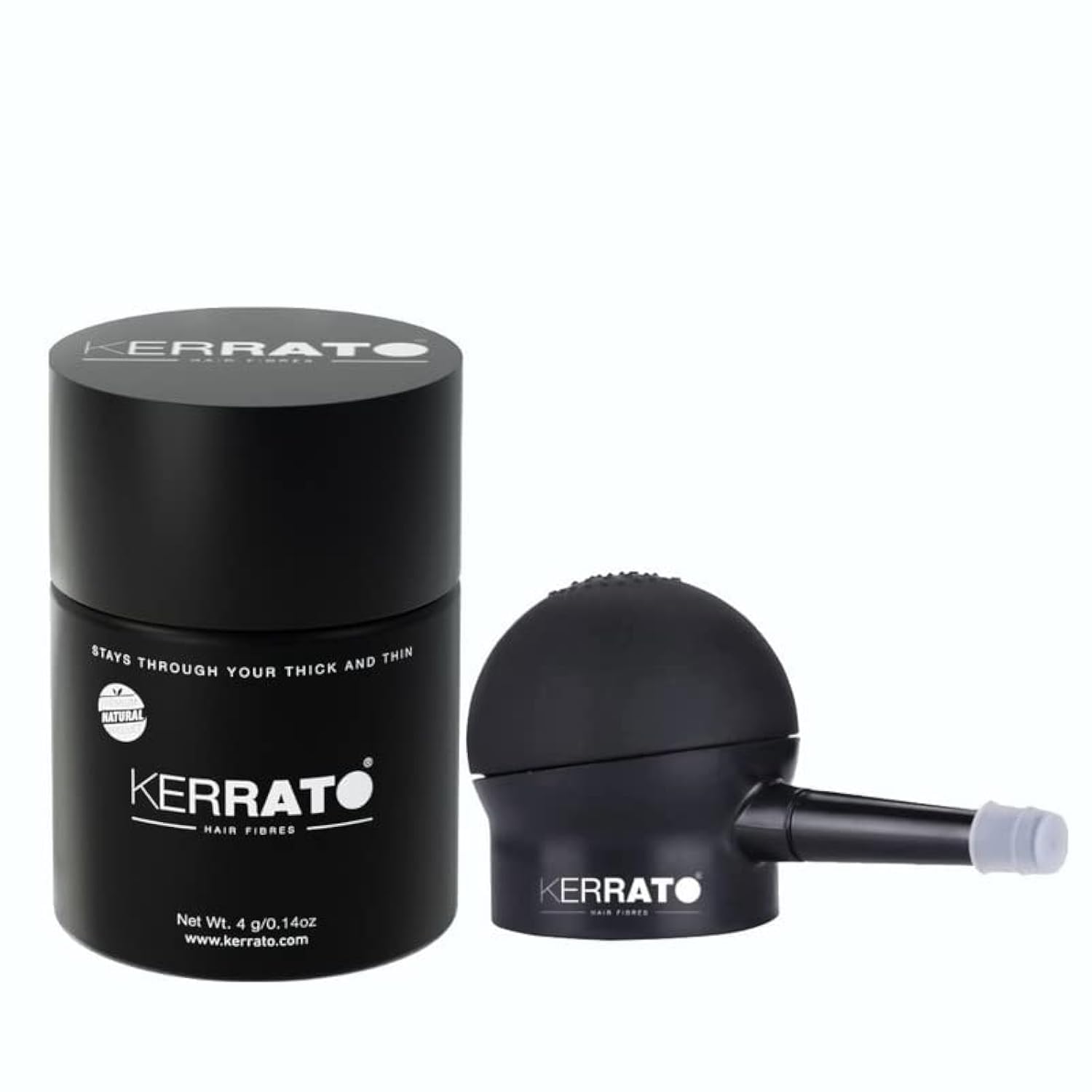 Kerrato Hair Fibres 4g (Natural Black) with Pump Applicator Combo Pack | Natural Keratin Hair Thickening Fibres for Men & Women | Conceal Thinning Hair Instantly | Hair Fiber Pump Applicator