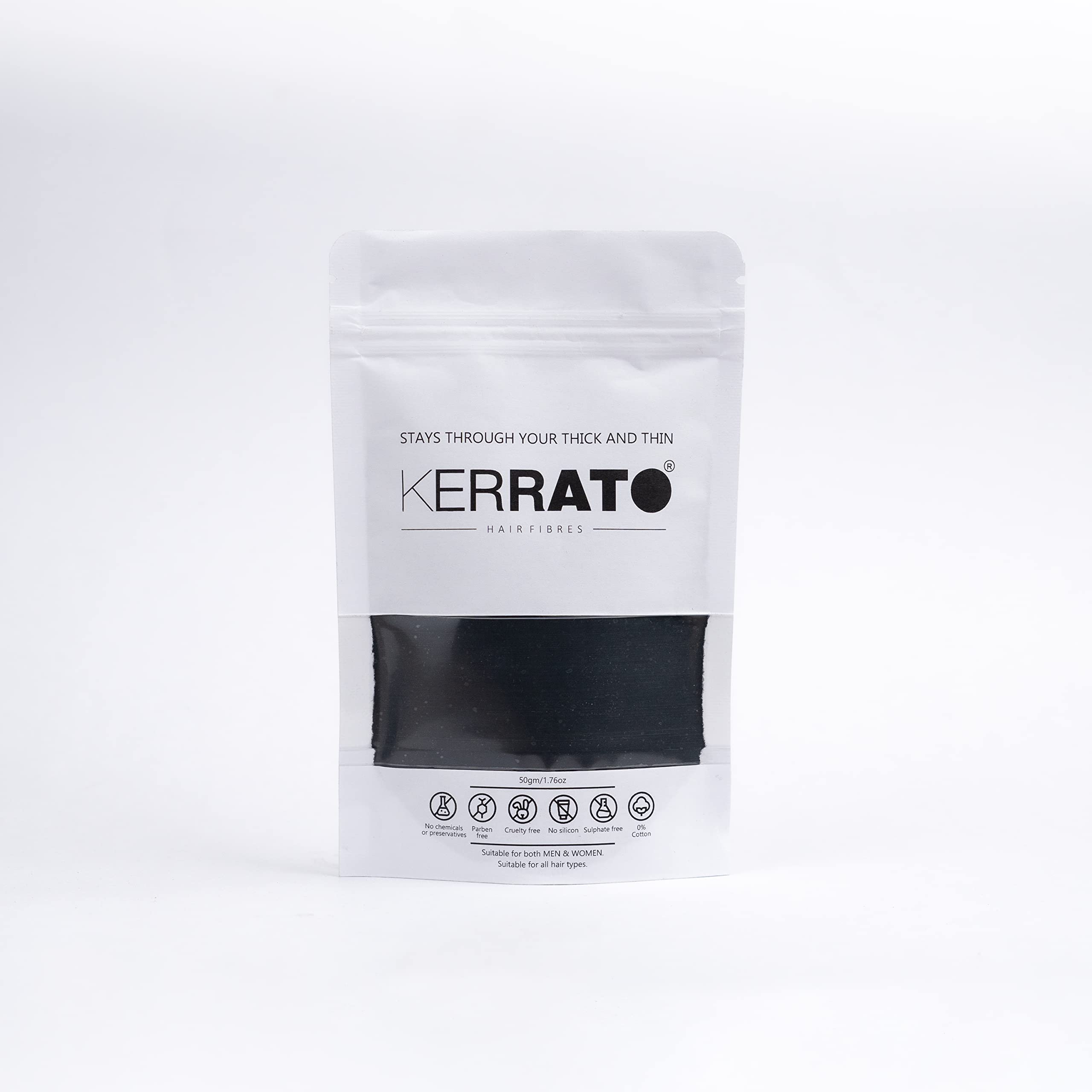 100% KERATIN.Kerrato hair fibres are made using 100% keratin and are suitable for people with thinning hair alopecia male pattern baldness female pattern baldness hair.