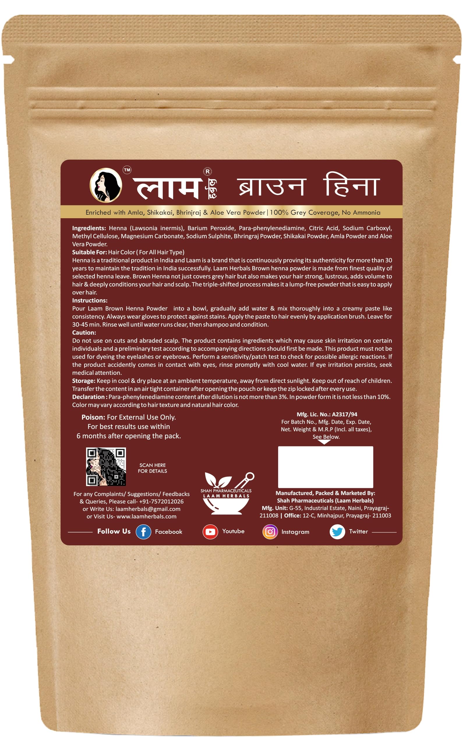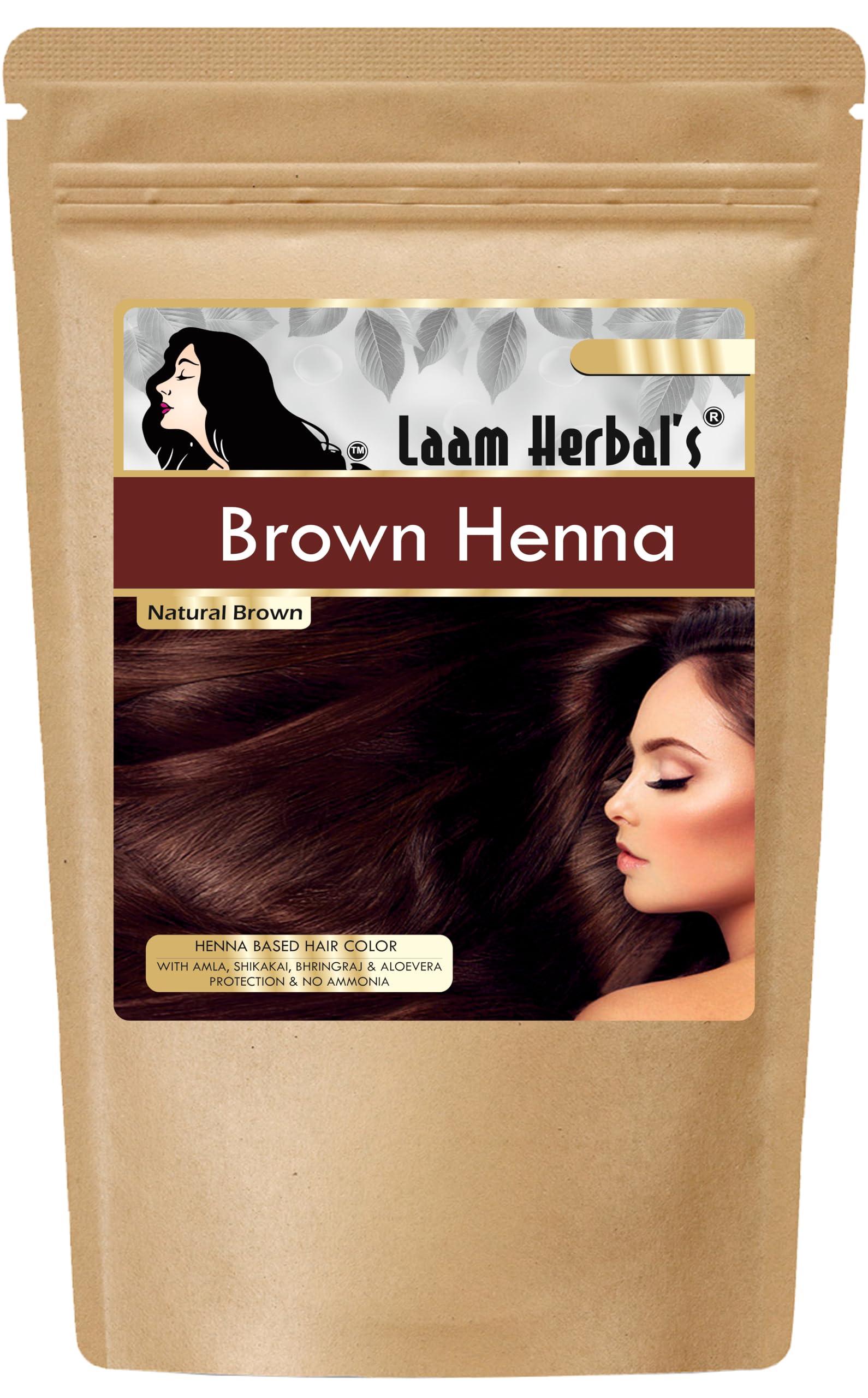 Laam Herbals Brown Henna | Long Lasting | Total Grey Coverage | Easy to apply | Color Guarantee | Extra protection with Amla Shikakai Bhringraj & Aloe Vera Powder- 100 g