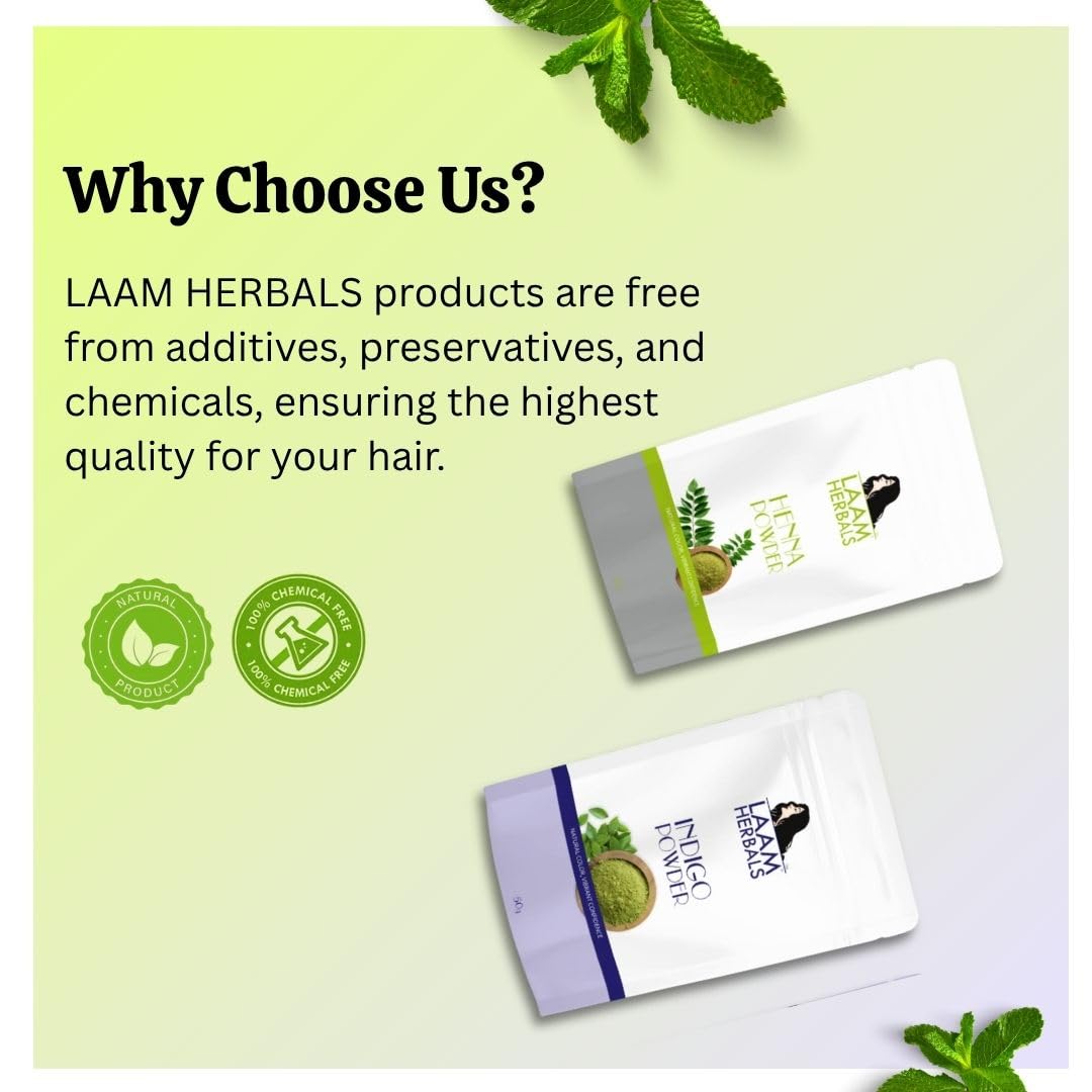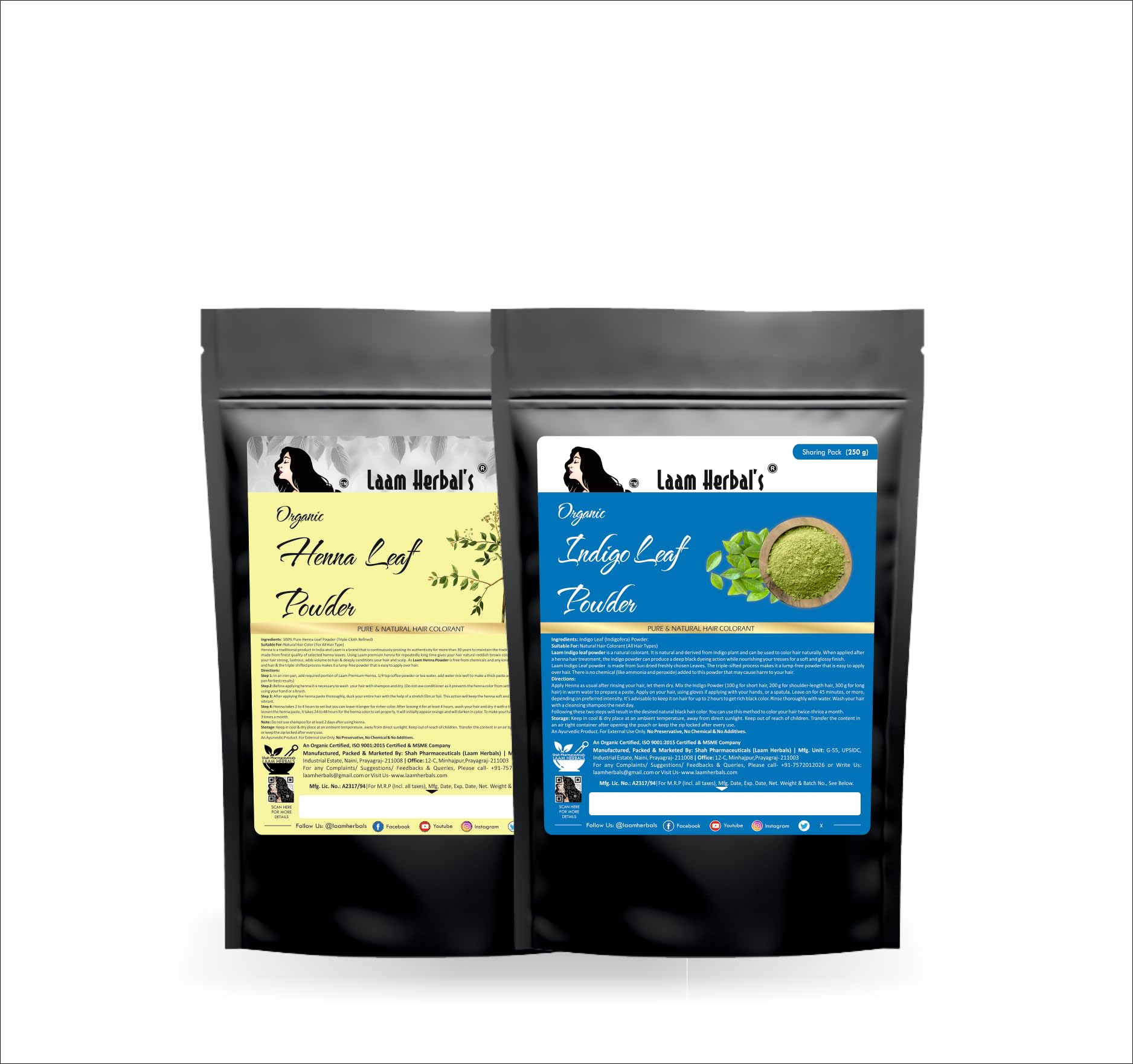 Laam Herbals Henna (Mehndi) & Indigo Powder (Combo Pack) | Natural Hair Colorant- 250 g Each