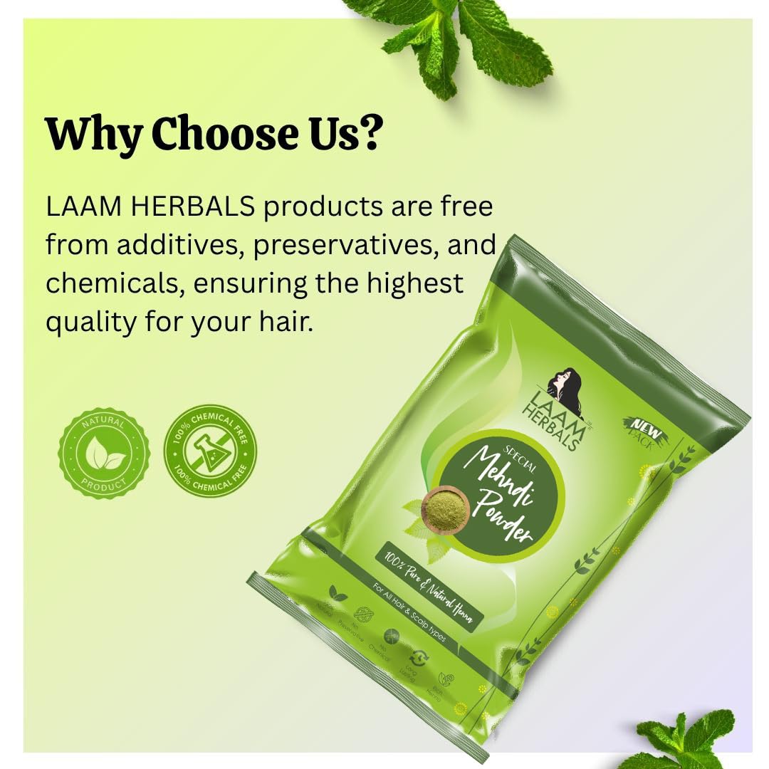 Laam Special Heena Powder|Pure & Natural Henna|No Chemicals No Additives No Preservatives No Scent No Color Added (350 g)