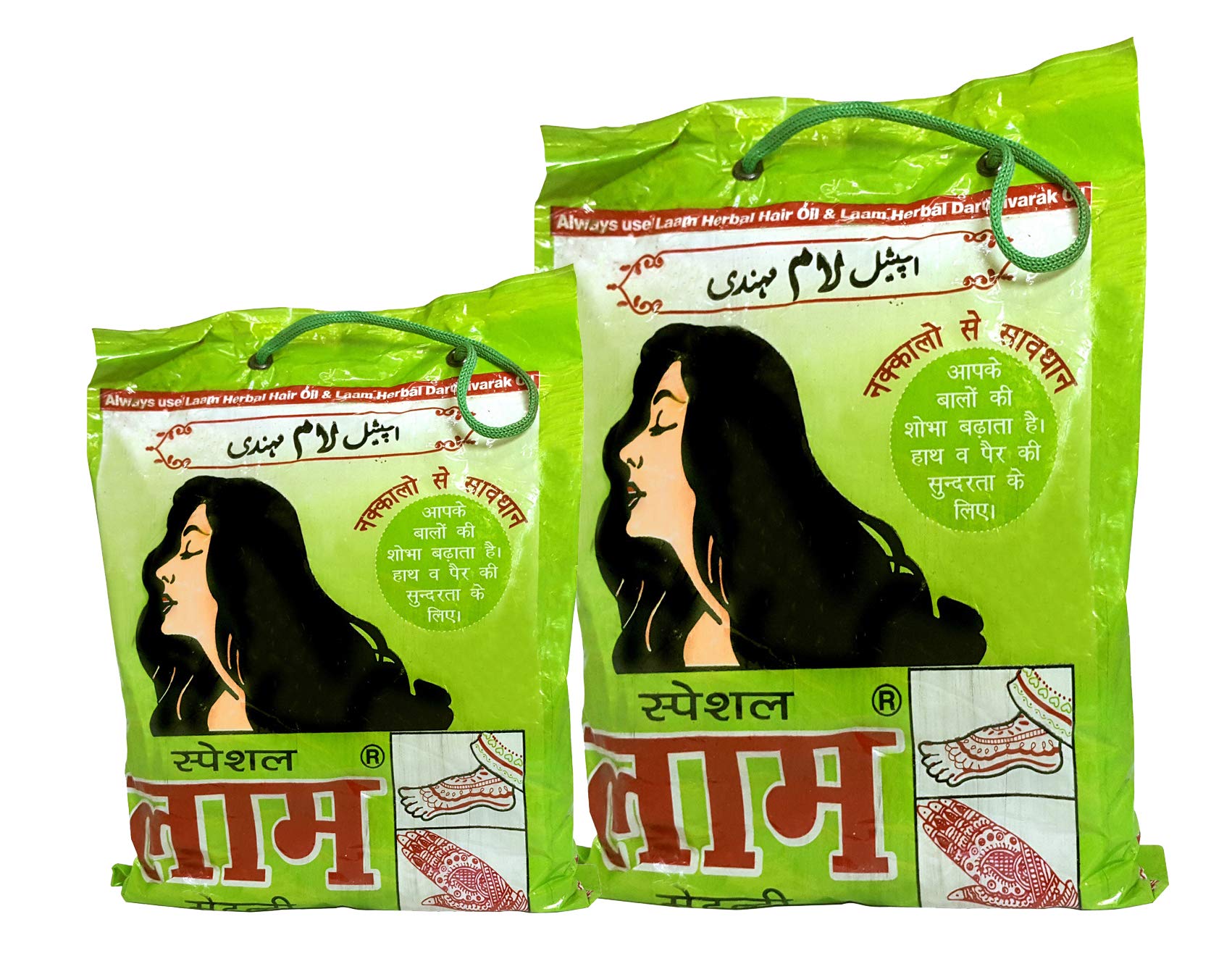 Laam Herbals is known for it Pure & Natural Henna Powder. Heena powder is made by Shade drying the leaves of heena plant and grinding it to fine powder. Heena leaves contains natural die that dies the upper layer of the skin temporarily. But heena leave does not leave stains if applied directly until it is grounded into powder. Laam Herbals provide pure natural and premium quality heena to our customers since 1991. The triple-sifted process makes it a lump-free powder that is easy to apply over Hair. The best way to use the heena powder is to mix it with tea water some coffee powder and for better results leave it for soak in an iron pan for 6 to 12 hours and then apply the paste on the hair after drying rinse off with normal water; do not use shampoo or soap to wash hair for at least 3 days. It takes several days of application to make the color permanent on your hair.