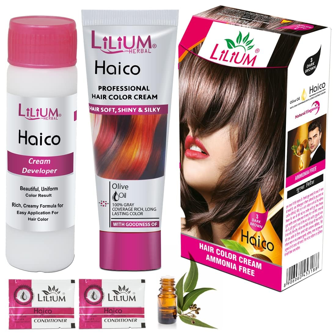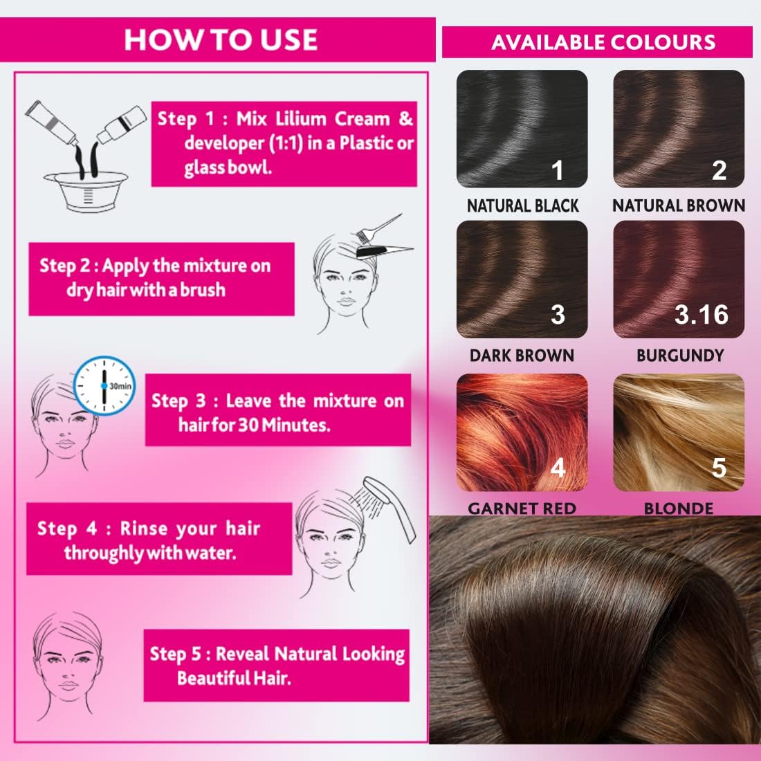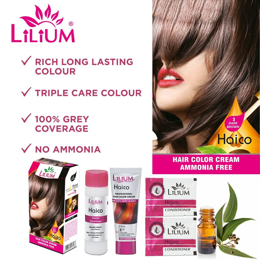Introducing Lilium Dark Brown Hair Color Cream a 100ml solution for vibrant long-lasting color. With its nourishing formula and easy application achieve rich salon-quality dark brown tones at home. Enjoy the depth of color without ammonia keeping your hair healthy and shiny. Elevate your look effortlessly with our Dark Brown Hair Color Cream. Experience the richness and depth of dark brown hues with our Dark Brown Hair Color Cream. Formulated with advanced color technology and nourishing ingredients this hair color cream delivers vibrant long-lasting results while keeping your hair healthy and shiny.