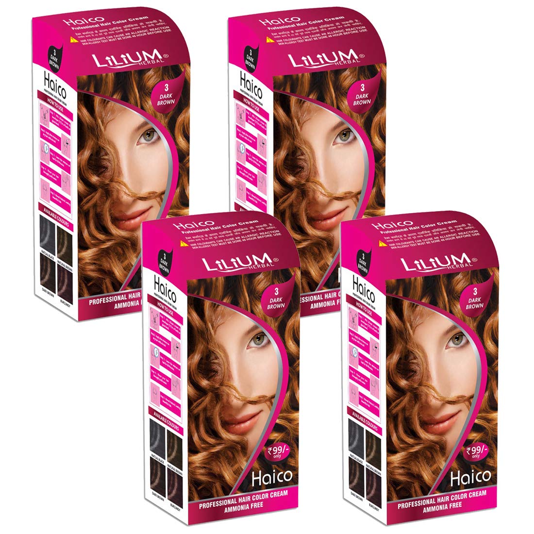 Lilium Herbal Haico Professional Dark Brown Hair Color Cream Ammonia Free Pack of 4