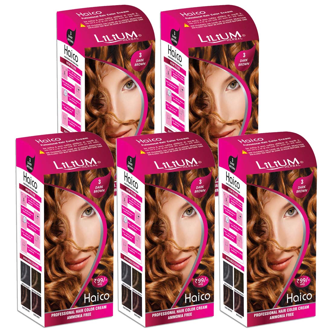 Lilium Herbal Haico Professional Dark Brown Hair Color Cream Ammonia Free Pack of 5