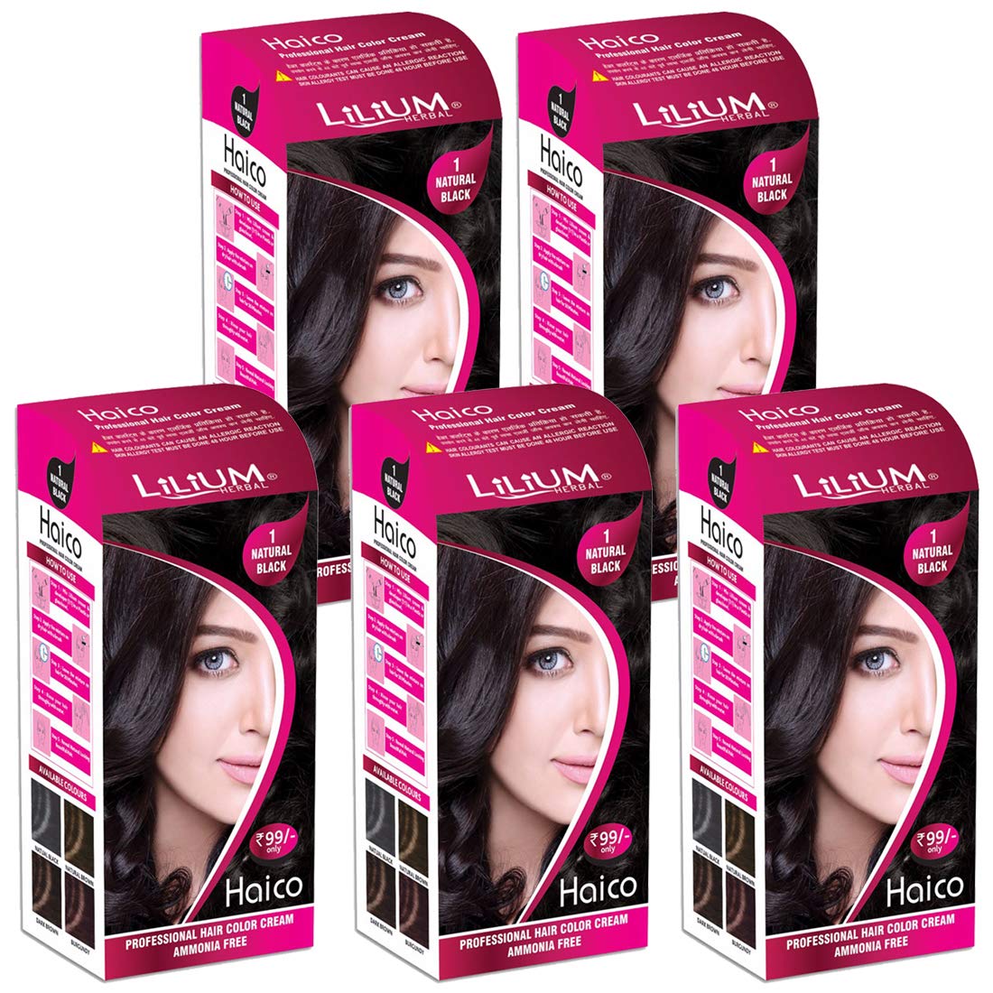 Lilium Herbal Haico Professional Natural Black Hair Color Cream Ammonia Free Pack of 5