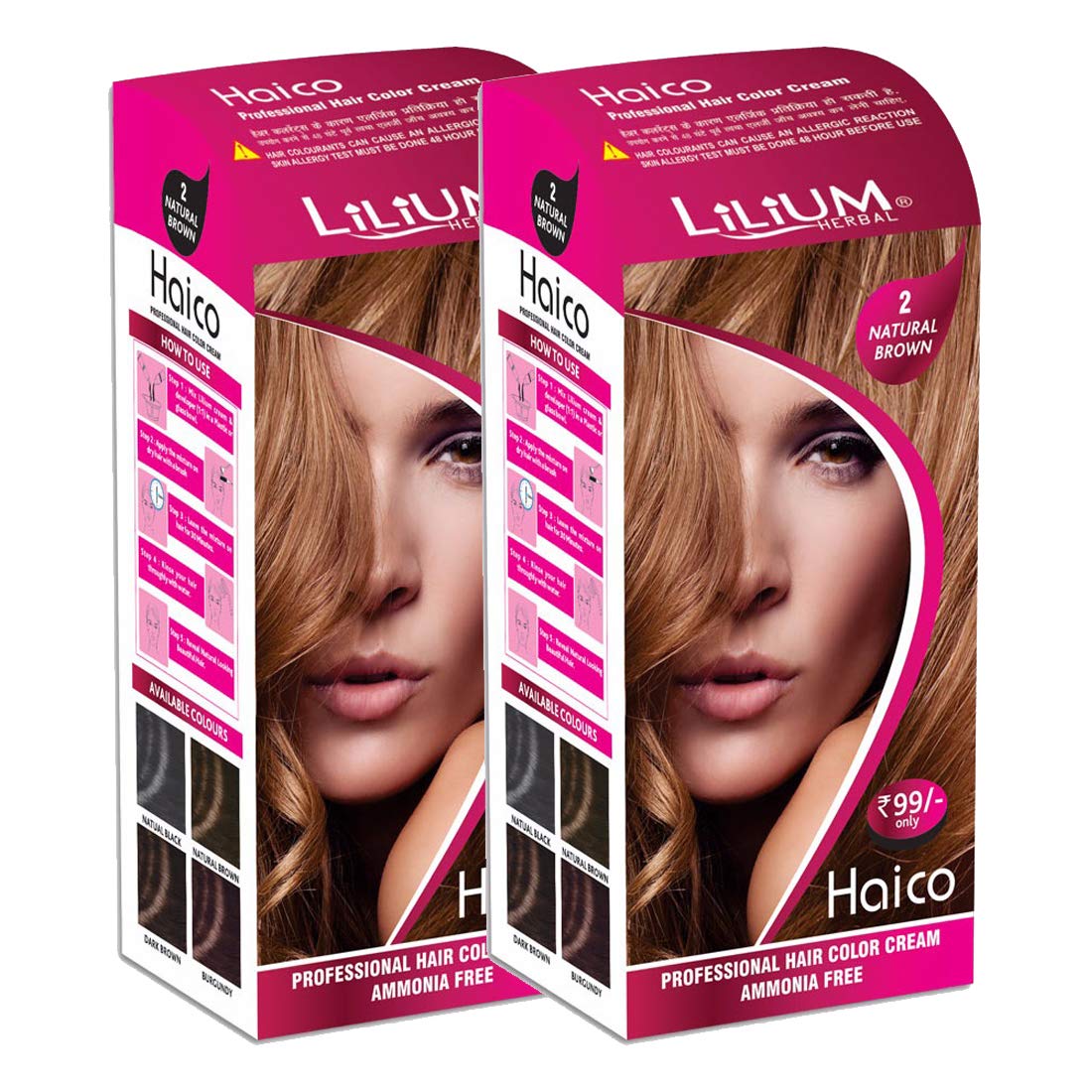 Lilium Herbal Haico Professional Natural Brown Hair Color Cream Ammonia Free Pack of 2