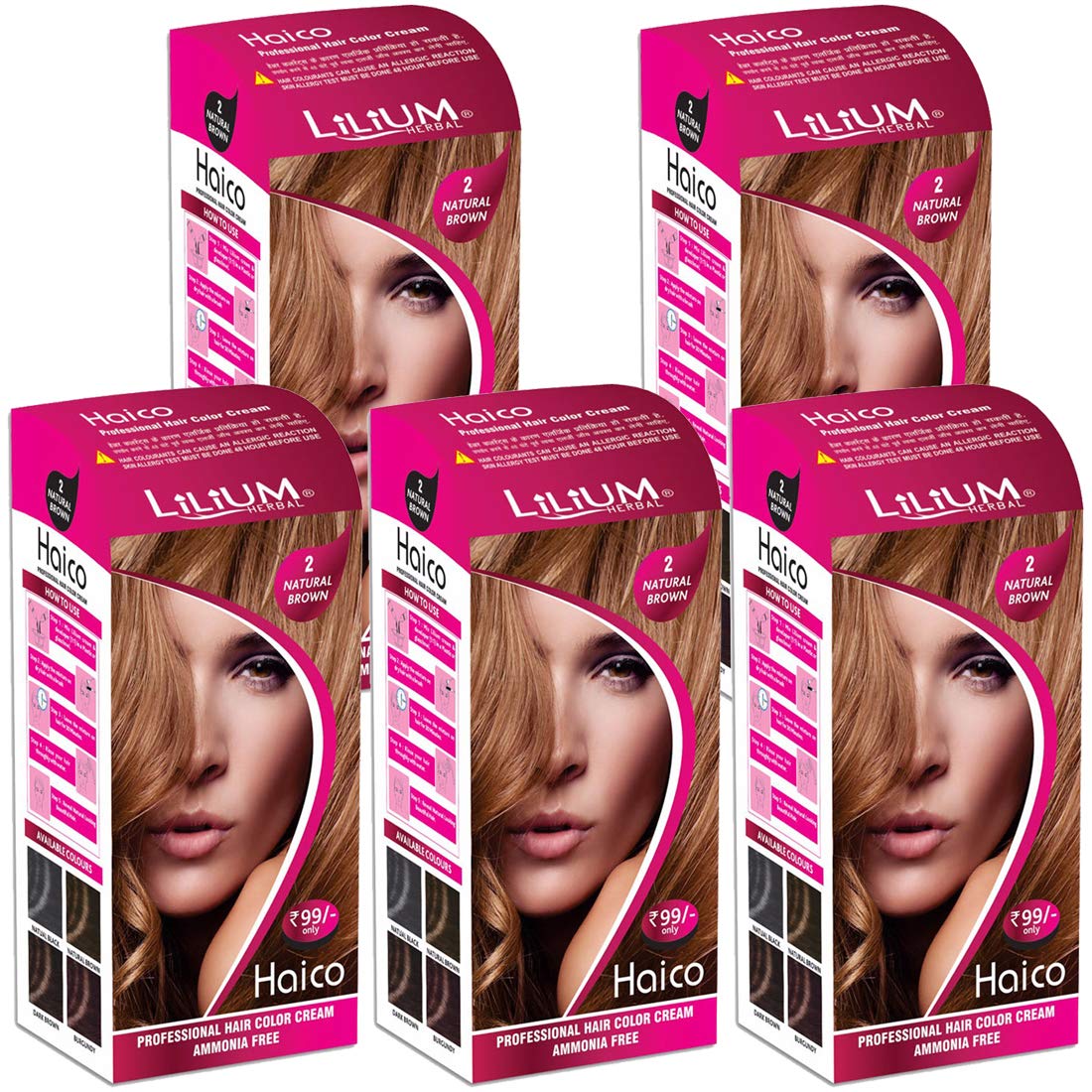 Lilium Herbal Haico Professional Natural Brown Hair Color Cream Ammonia Free Pack of 5