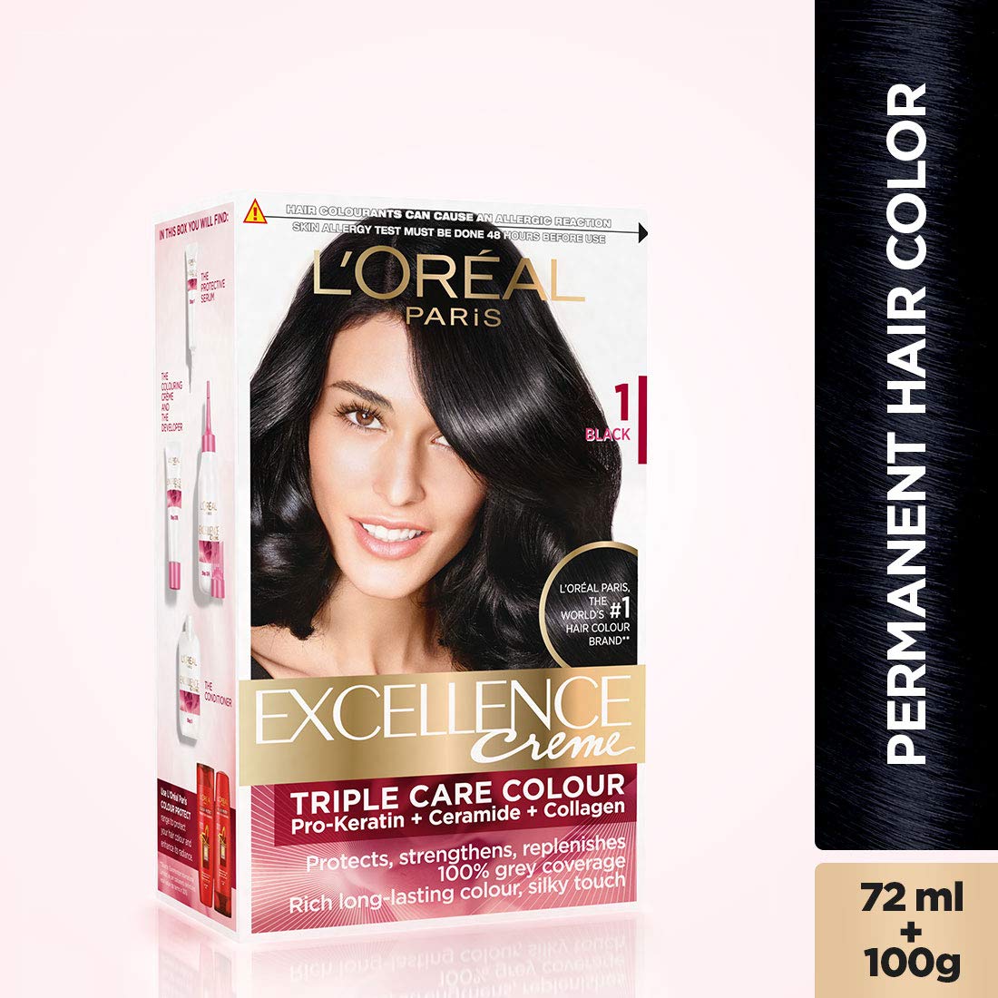 L'OREAL PARIS Excellence Creme Hair Color 4 Natural Dark Brown 72Ml+100G And Excellence Creme Hair Color 1 Black72Ml+100G