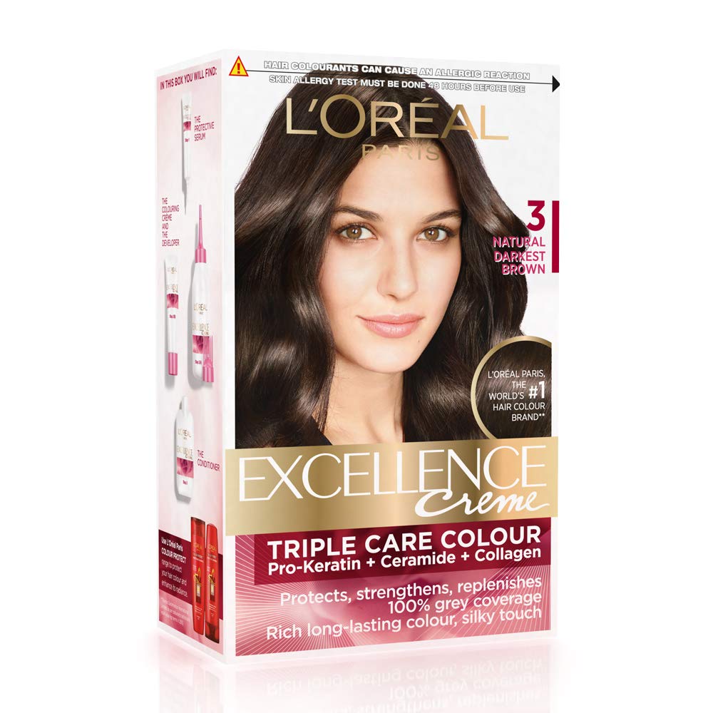 L'Oreal Paris Excellence Creme Hair Color 4 Natural Dark Brown 72ml+100g and L'Oreal Paris Excellence Creme Hair Color 3 Natural Darkest Brown 72ml+100g