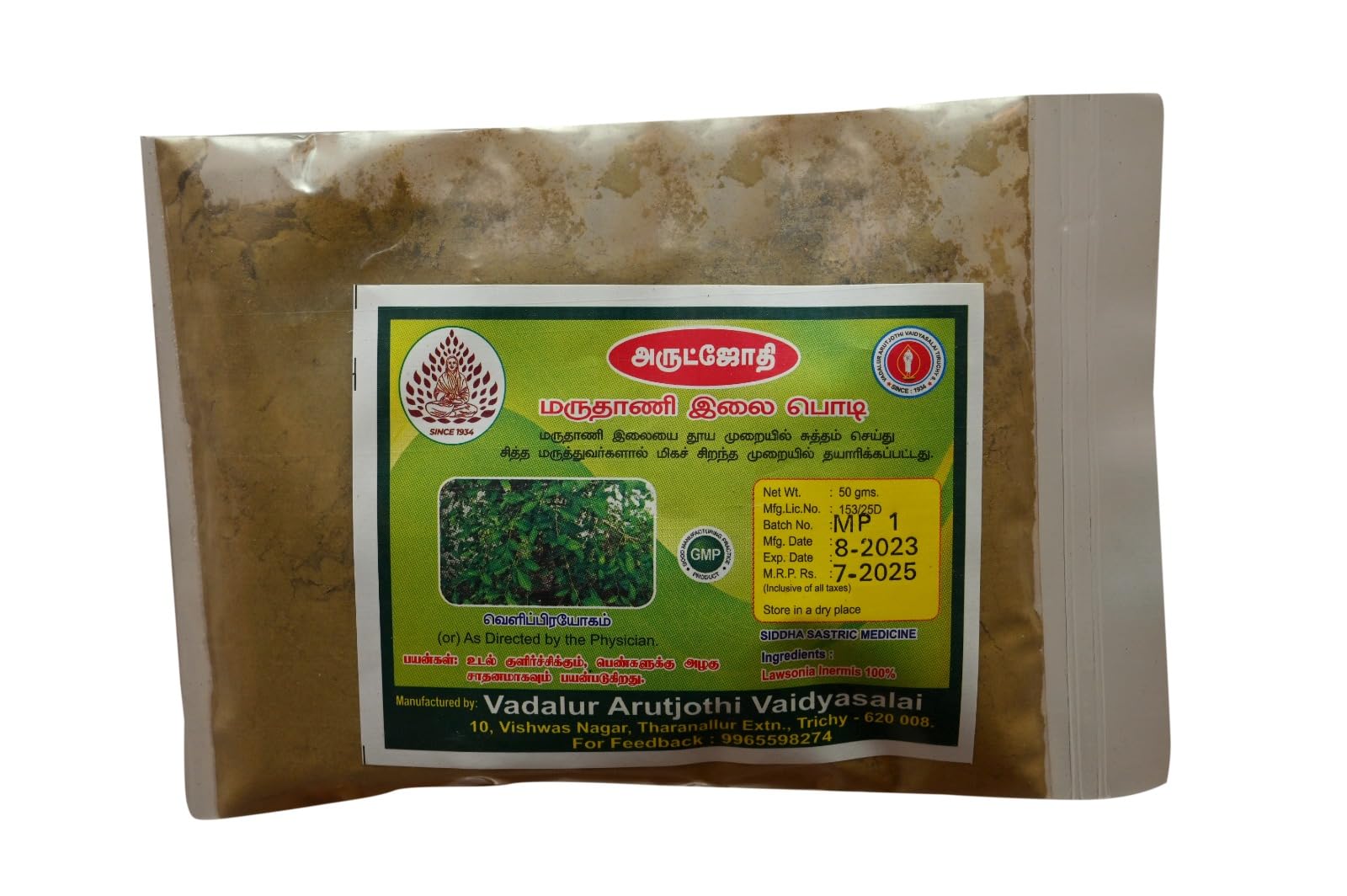 Henna/Marudhani powder is known for its hair conditioning properties. It helps to nourish and strengthen the hair making it soft smooth and lustrous Regular use of henna powder can improve the overall health of the hair and reduce issues like dryness and frizz. It can soothe itchiness reduce dandruff and promote overall scalp health. Benefits of Henna Leaf Helps to prevent dandruff. Nourishes your hair naturally. Preserve your hair colour. Controls scalp itchiness. Reduce hair fall. Maintain healthy hair growth Direction of use: Make a paste of the powder with lukewarm water apply on the hair & leave for 60-90 minutes wash & dry your hair.