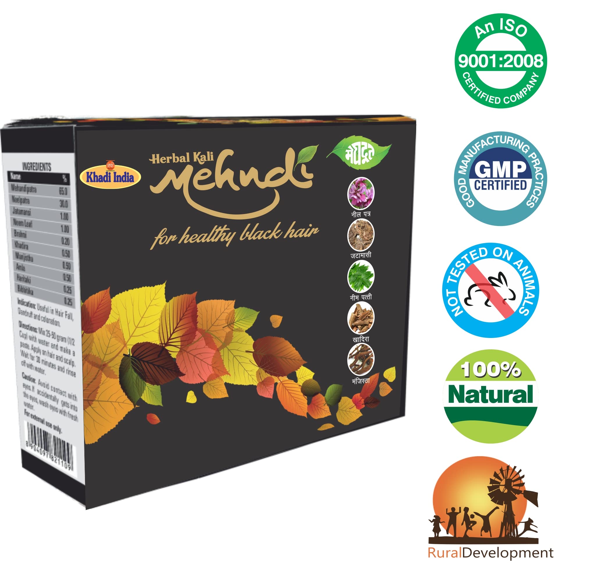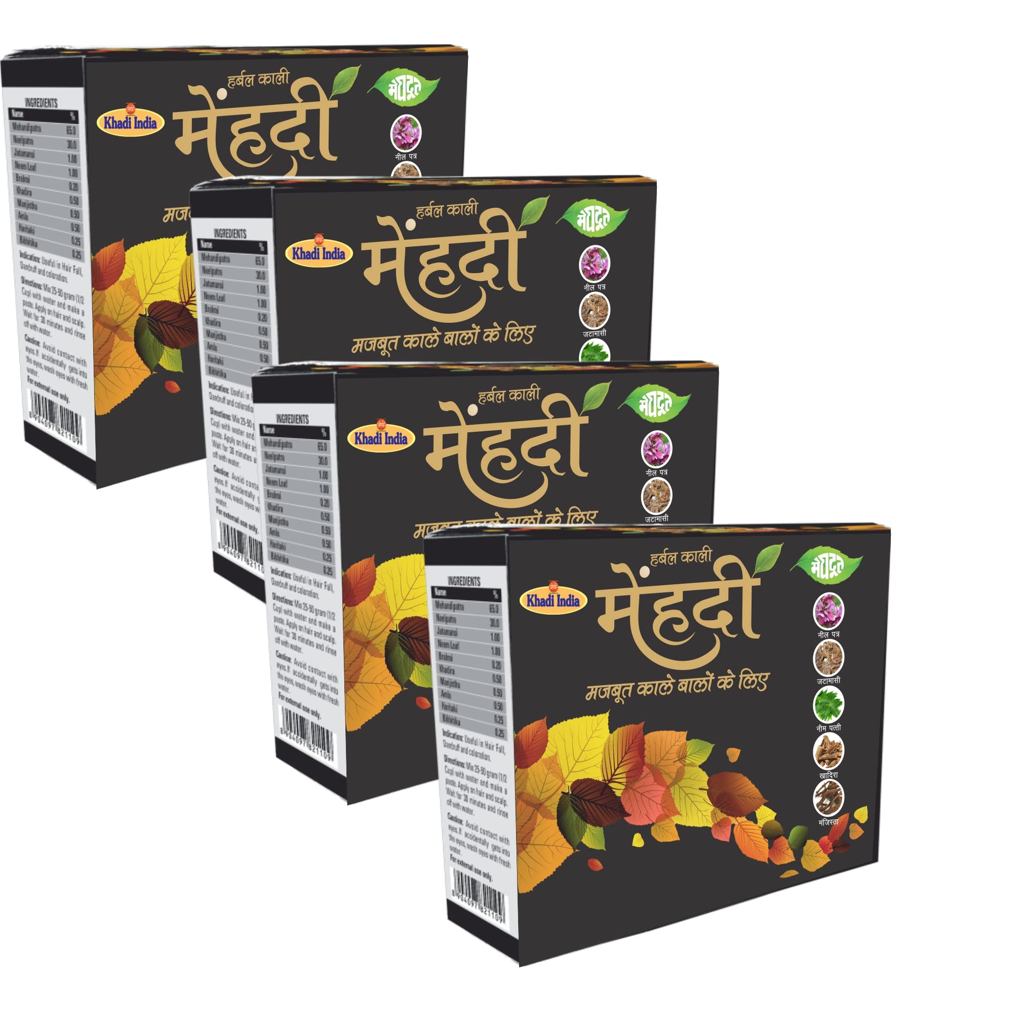 HomeHealth & PersonalHair CareNatural Hair ColorMeghdoot Herbal Kali Mehandi or Henna for Natural Black Hair Khadi Kali Mehandi/Henna Herbal Kali Mehndi For Longlasting Natural Hair Colour 60grm Each (Pack of 4)