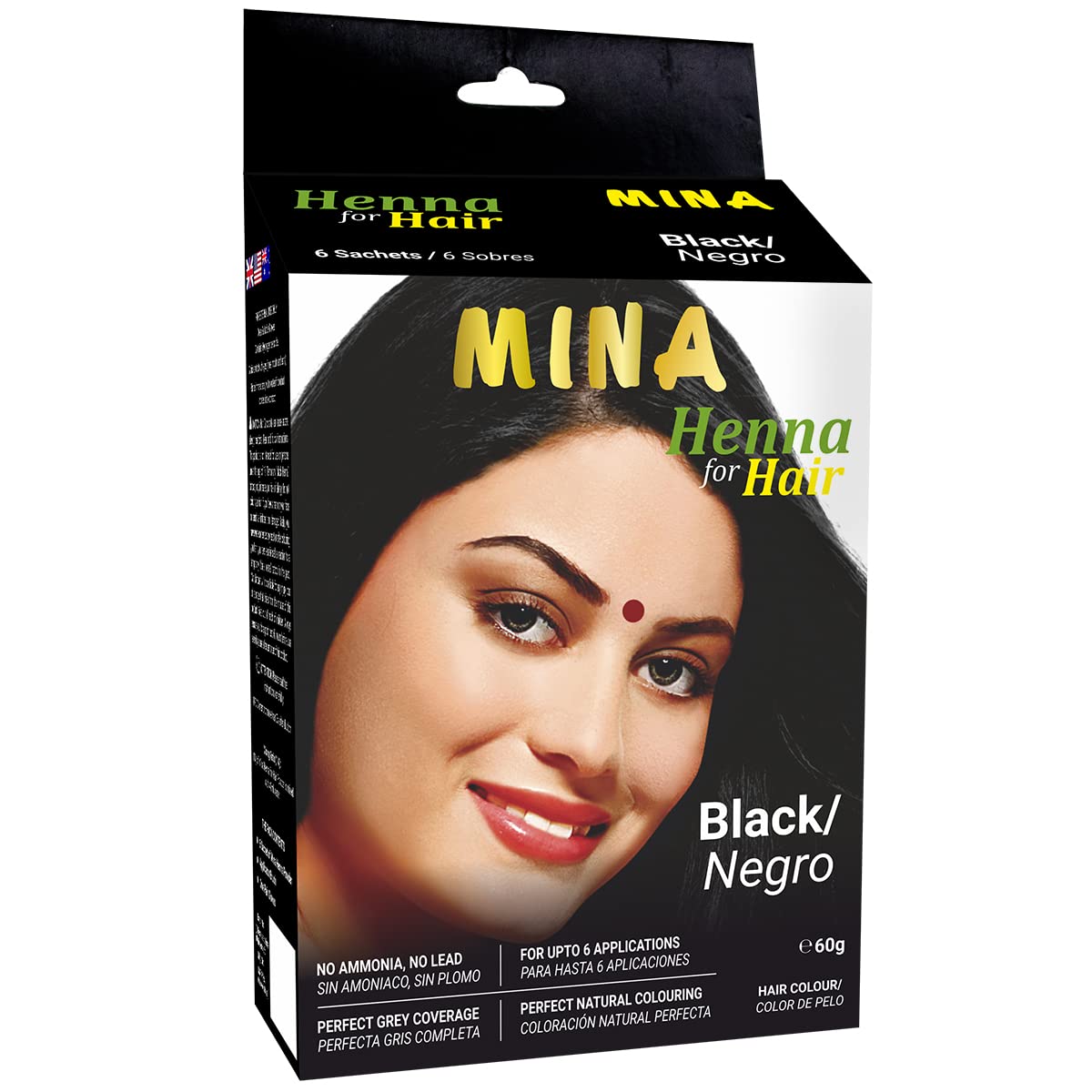 MINA Henna For Hair Colour Black with 100% Grey Coverage |Vegan and Cruelty-free 6x10g