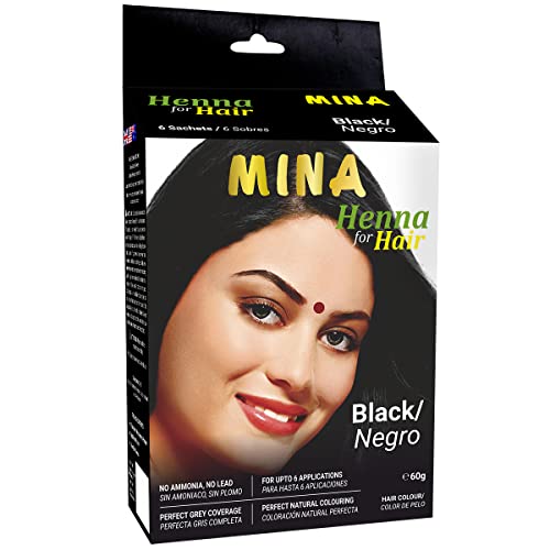 MINA Henna For Hair Colour Black with 100% Grey Coverage |Vegan and Cruelty-free, 6x10g