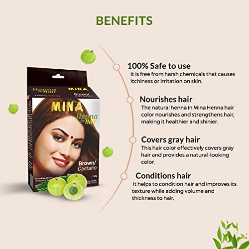 • Natural and nourishing: Mina Henna hair colour is made with potent ingredients like Bhringraj powder amla powder and shikakai which nourish and strengthen your hair while adding beautiful color.