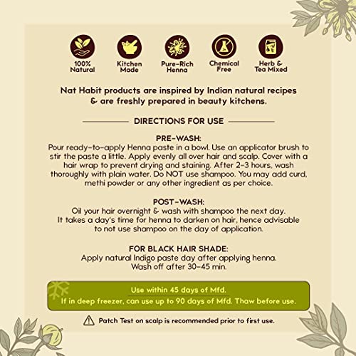 HomeHealth & PersonalHair CareNatural Hair ColorNat Habit - Fresh Ready To Apply Henna Paste, Pre-Soaked in Black Tea and Herbs,100% Natural Rajasthani Henna, Imparts Rich Brown Shade (Pack of 2 x 220g)