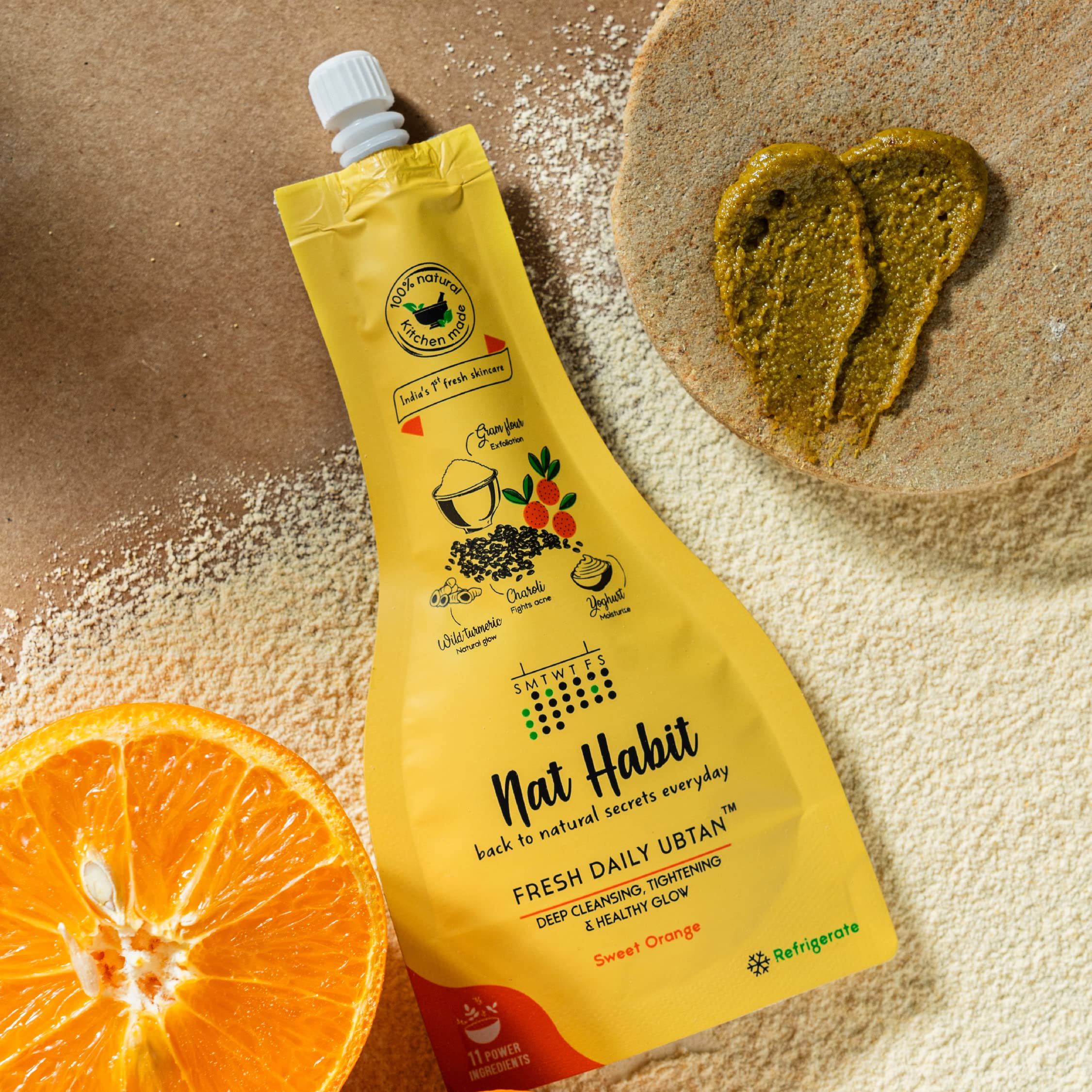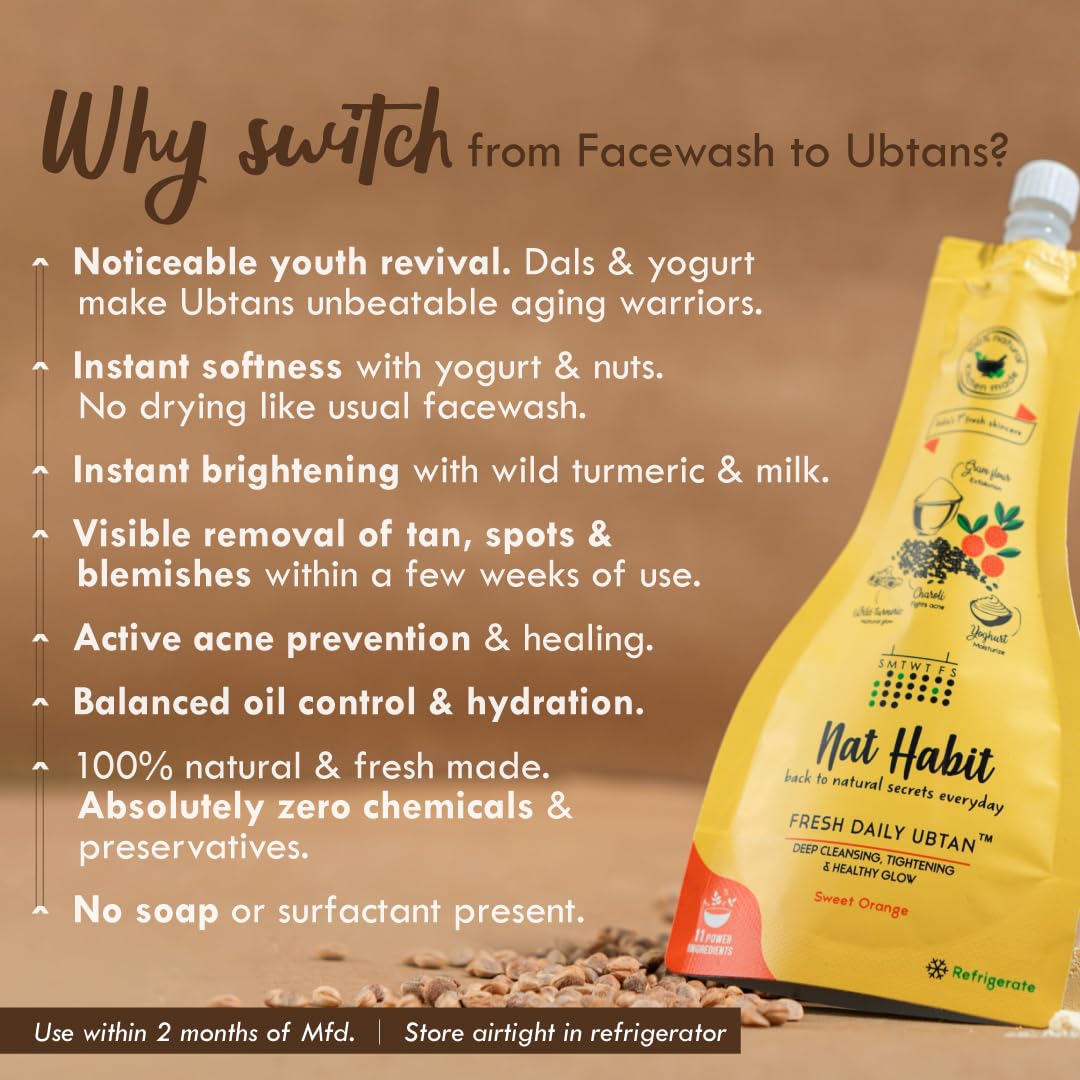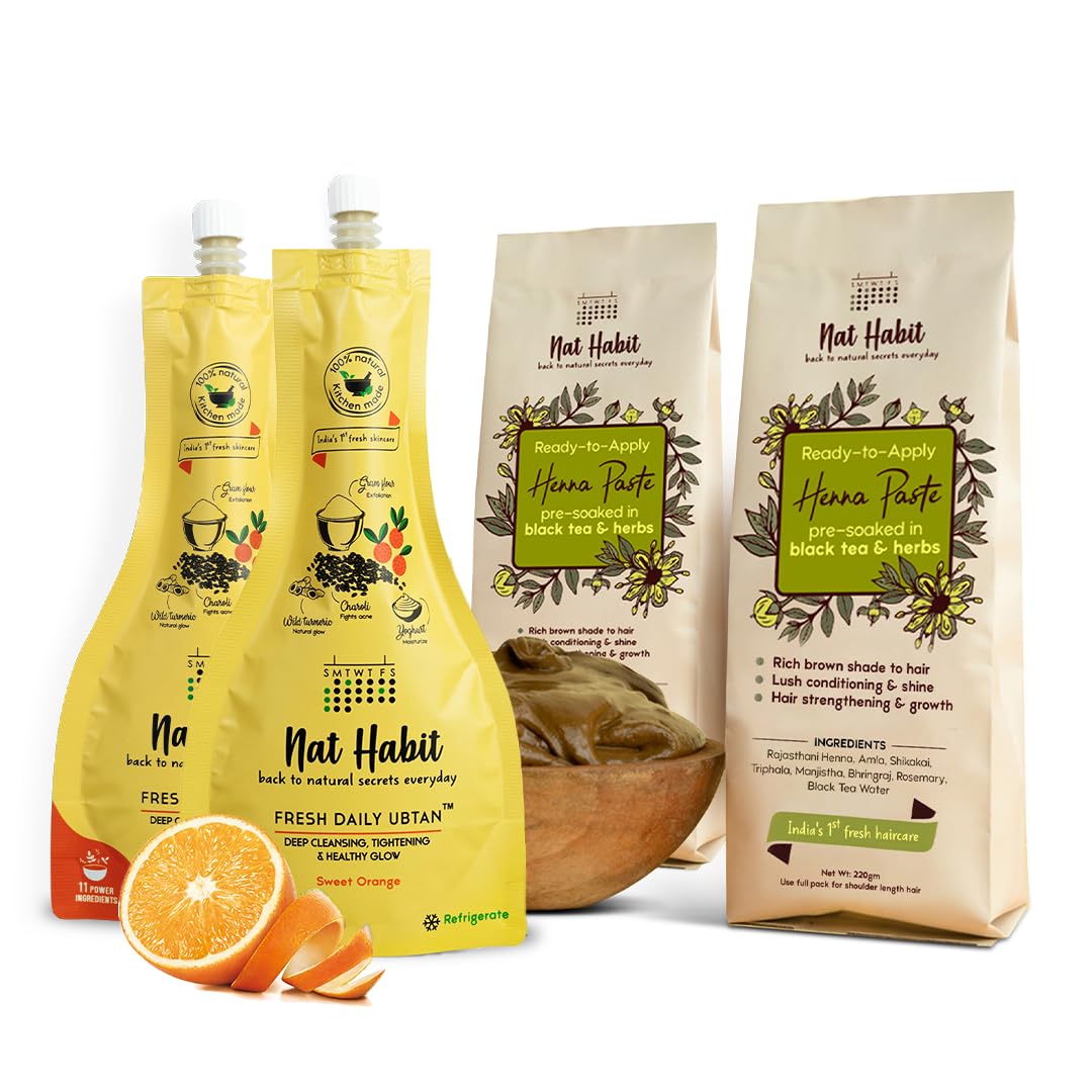 Nat Habit Ready-To-Apply Henna Paste & Sweet Orange Daily Ubtan Face Cleanser The Ideal Combo For Hair Deep Conditioning & Hair Fall with Rich Dark Brown Color & Skin Care (Combo Pack of 3)