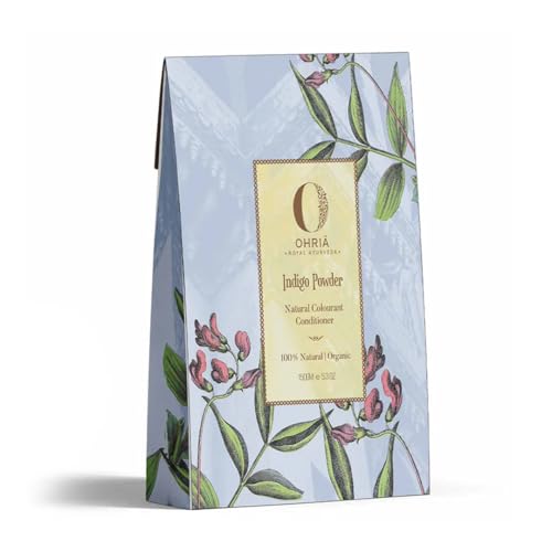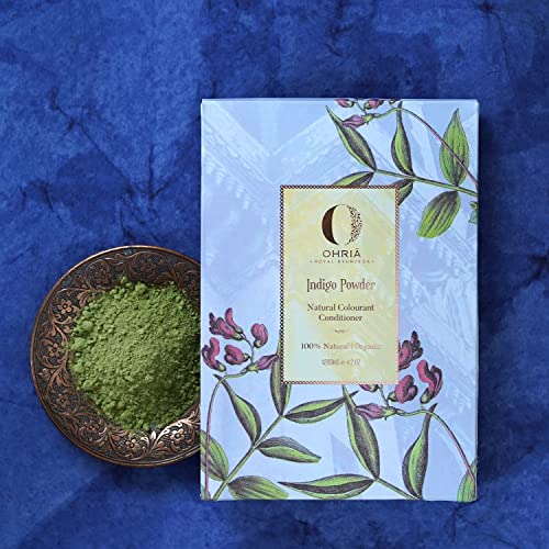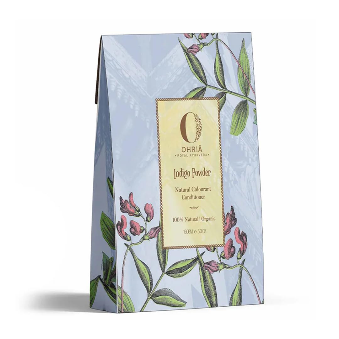 Organically farm-grown indigo leaves powder for soft shiny & deeply conditioned hair. Intensifies the henna coloured hair to a rich black hue. 1. Natural vegan hair colourant derived from plant Indigo Tinctoria. 2. It imparts a dark hue to henna coloured hair. 3. Nourishes hair stimulating new growth reduces dandruff & maintains a healthy scalp. 4. Strengthens the roots & strands.