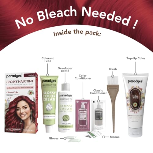 • Contents: The package contains Glossy Color Cream (60g) Glossy Cream Developer (60g) Classic Conditioner (20g) Anti-Fade Conditioner (20g) a manual and disposable gloves Paradyes Semi-Permanent Coffee Brown Top-up Color (120g)