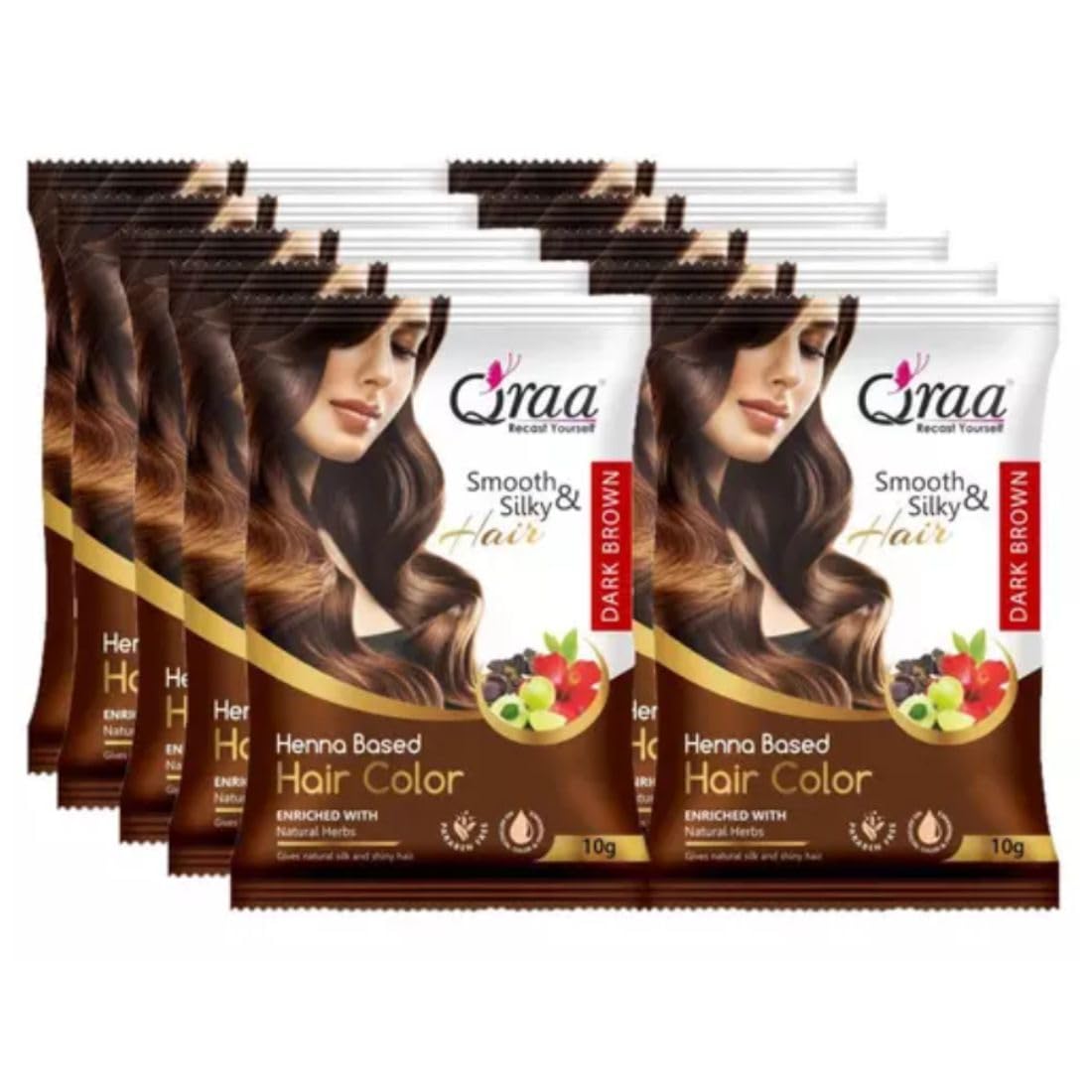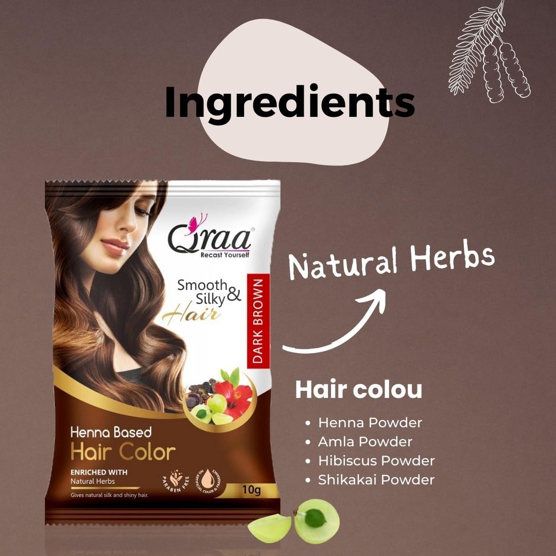 Qraa Herbal Hair Color Henna Based Powder For Hair Coloring Natural Black 10gm Each (Pack of 10100 g) (Natural Brown)